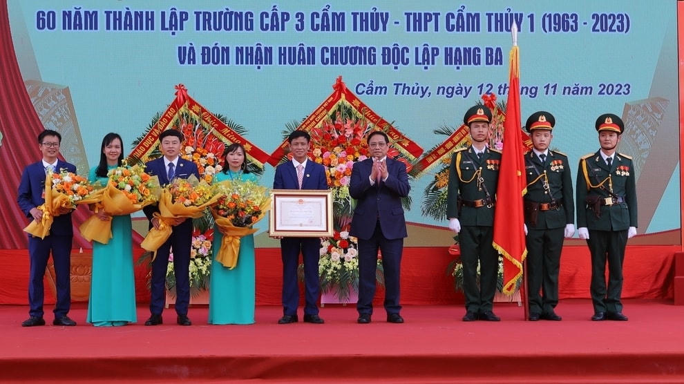 Trong chương trình chuyến thăm và làm việc tại Thanh Hóa, sáng ngày 12/11, Thủ tướng Phạm Minh Chính cùng đoàn công tác và đại diện lãnh đạo chủ chốt tỉnh Thanh Hóa đã về dự lễ kỷ niệm 60 năm thành lập Trường cấp 3 Cẩm Thủy - Trường THPT Cẩm Thủy 1 (1963-2023) và đón nhận Huân chương Độc lập hạng Ba.