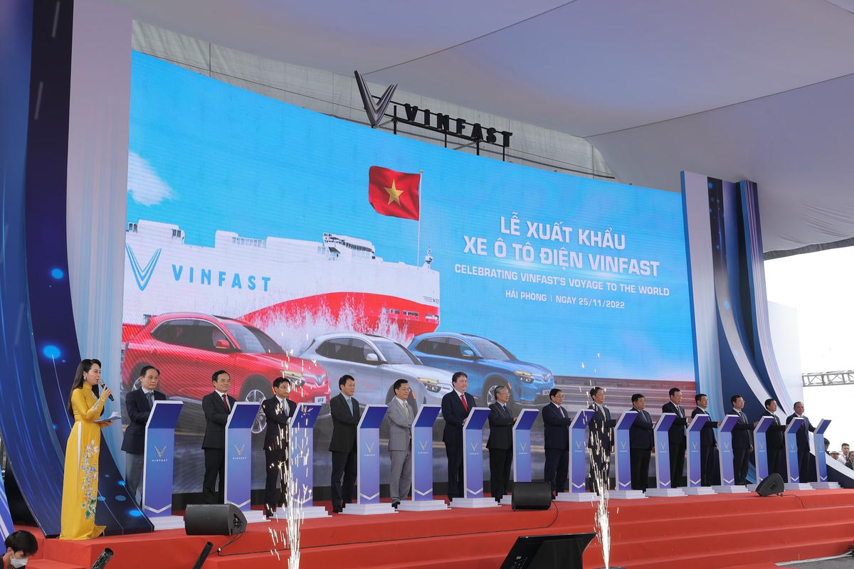 Thủ tướng Chính phủ Phạm Minh Chính cùng lãnh đạo nhiều Bộ, Ban, ngành và lãnh đạo địa phương trong cả nước đã dự, chứng kiến lễ xuất khẩu những chiếc xe điện thông minh đầu tiên ra thị trường quốc tế.