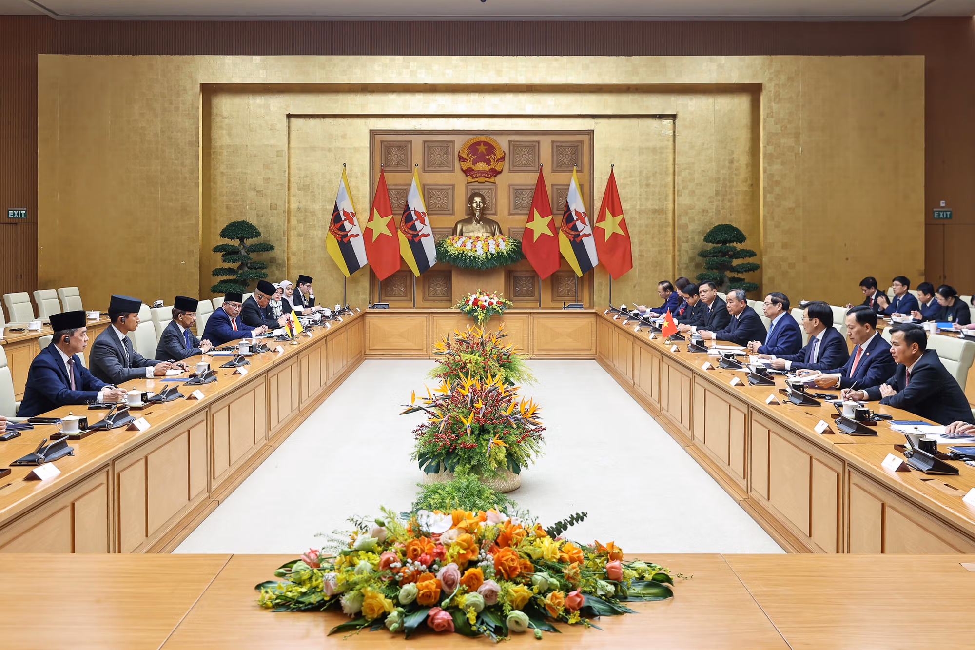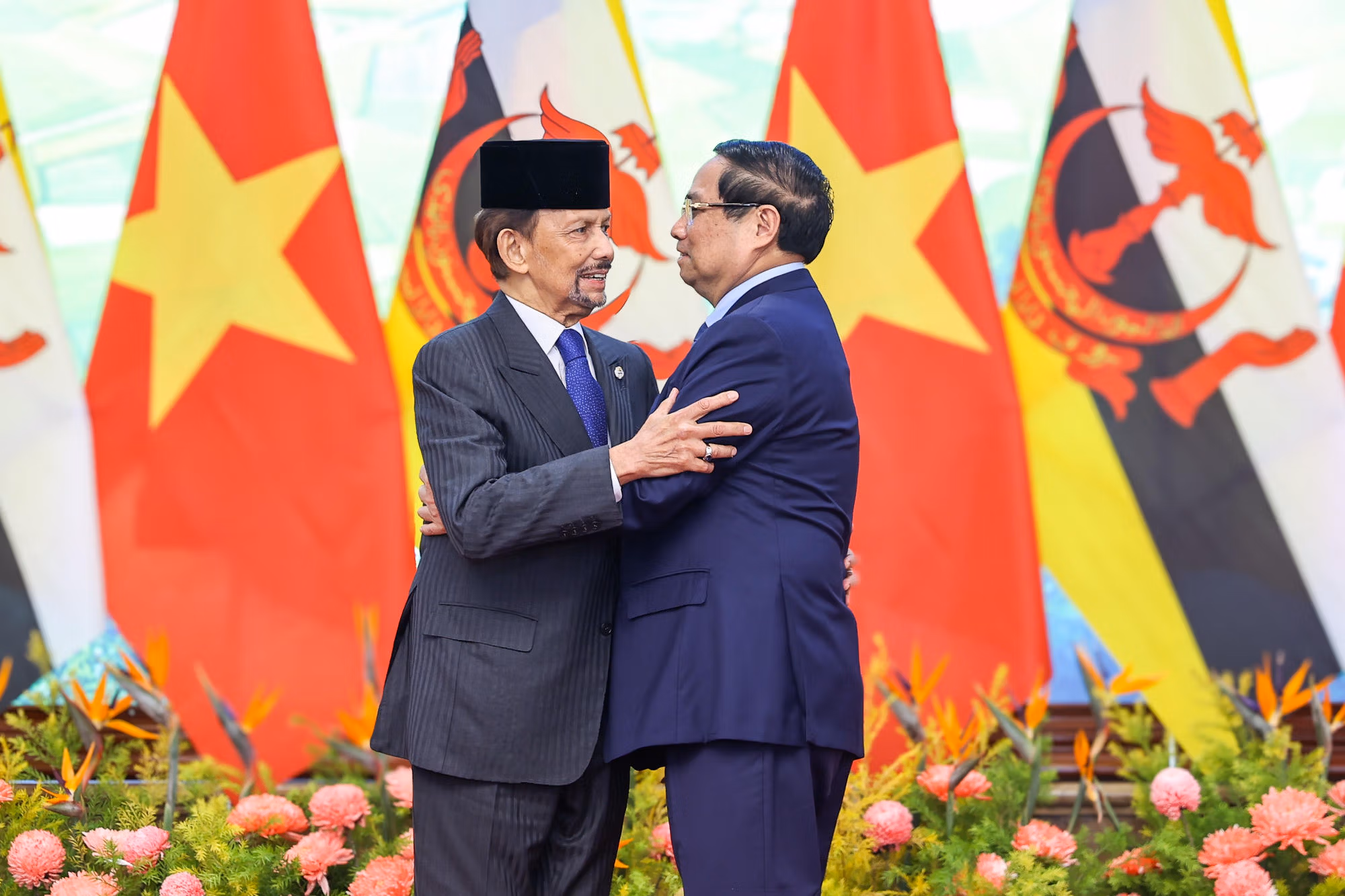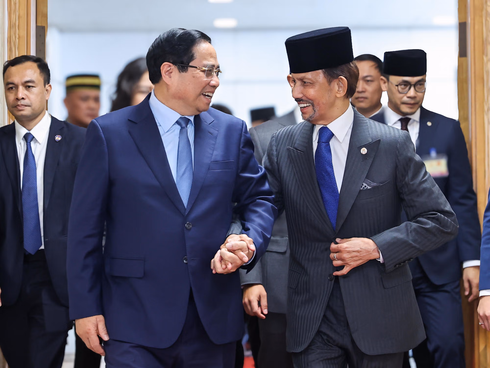 Thủ tướng Chính phủ Phạm Minh Chính nhiệt liệt chào mừng Quốc vương Haji Hassanal Bolkiah và Đoàn đại biểu cấp cao Brunei sang thăm Việt Nam, bày tỏ vui mừng gặp lại Quốc vương sau cuộc gặp tại Hội nghị Cấp cao ASEAN 47 tại Malaysia vừa qua, nhấn mạnh chuyến thăm có ý nghĩa hết sức quan trọng nhằm đánh giá kết quả triển khai quan hệ Đối tác toàn diện thời gian qua, đồng thời đưa quan hệ song phương lên những tầm cao mới, ngày càng thực chất và hiệu quả hơn.