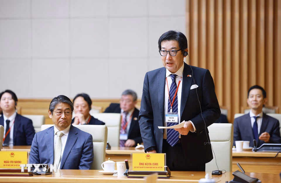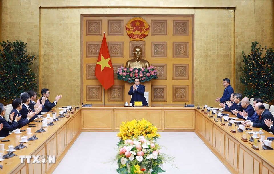 Thủ tướng Phạm Minh Chính tiếp Đoàn các tổ chức doanh nghiệp Nhật Bản Thứ Hai 09/02/2026 18:05 (GMT+7) Chiều 9/2/2026 tại Hà Nội, Thủ tướng Phạm Minh Chính tiếp Đoàn các tổ chức, doanh nghiệp của Nhật Bản và ông Ito Naoki, Đại sứ Nhật Bản tại Việt Nam. Thủ tướng Phạm Minh Chính tiếp Đoàn các tổ chức, doanh nghiệp của Nhật Bản. (Ảnh: Dương Giang/TTXVN)Đoàn các tổ chức, doanh nghiệp của Nhật Bản tham dự buổi gặp. (Ảnh: Dương Giang/TTXVN)Đoàn các tổ chức, doanh nghiệp của Nhật Bản tham dự buổi gặp. (Ảnh: Dương Giang/TTXVN)Thủ tướng Phạm Minh Chính phát biểu tại buổi tiếp Đoàn các tổ chức, doanh nghiệp của Nhật Bản. (Ảnh: Dương Giang/TTXVN)Ông Keita Ishii, Chủ tịch Ủy ban Kinh tế Nhật Bản-Mekong, Chủ tịch kiêm CEO Tập đoàn Itochu phát biểu. (Ảnh: Dương Giang/TTXVN)Thủ tướng Phạm Minh Chính tiếp Đoàn các tổ chức, doanh nghiệp của Nhật Bản. (Ảnh: Dương Giang/TTXVN)Thủ tướng Phạm Minh Chính tiếp Đoàn các tổ chức, doanh nghiệp của Nhật Bản. (Ảnh: Dương Giang/TTXVN)Thủ tướng Phạm Minh Chính phát biểu tại buổi tiếp Đoàn các tổ chức, doanh nghiệp của Nhật Bản. (Ảnh: Dương Giang/TTXVN) TheoVietnam+ (VietnamPlus)