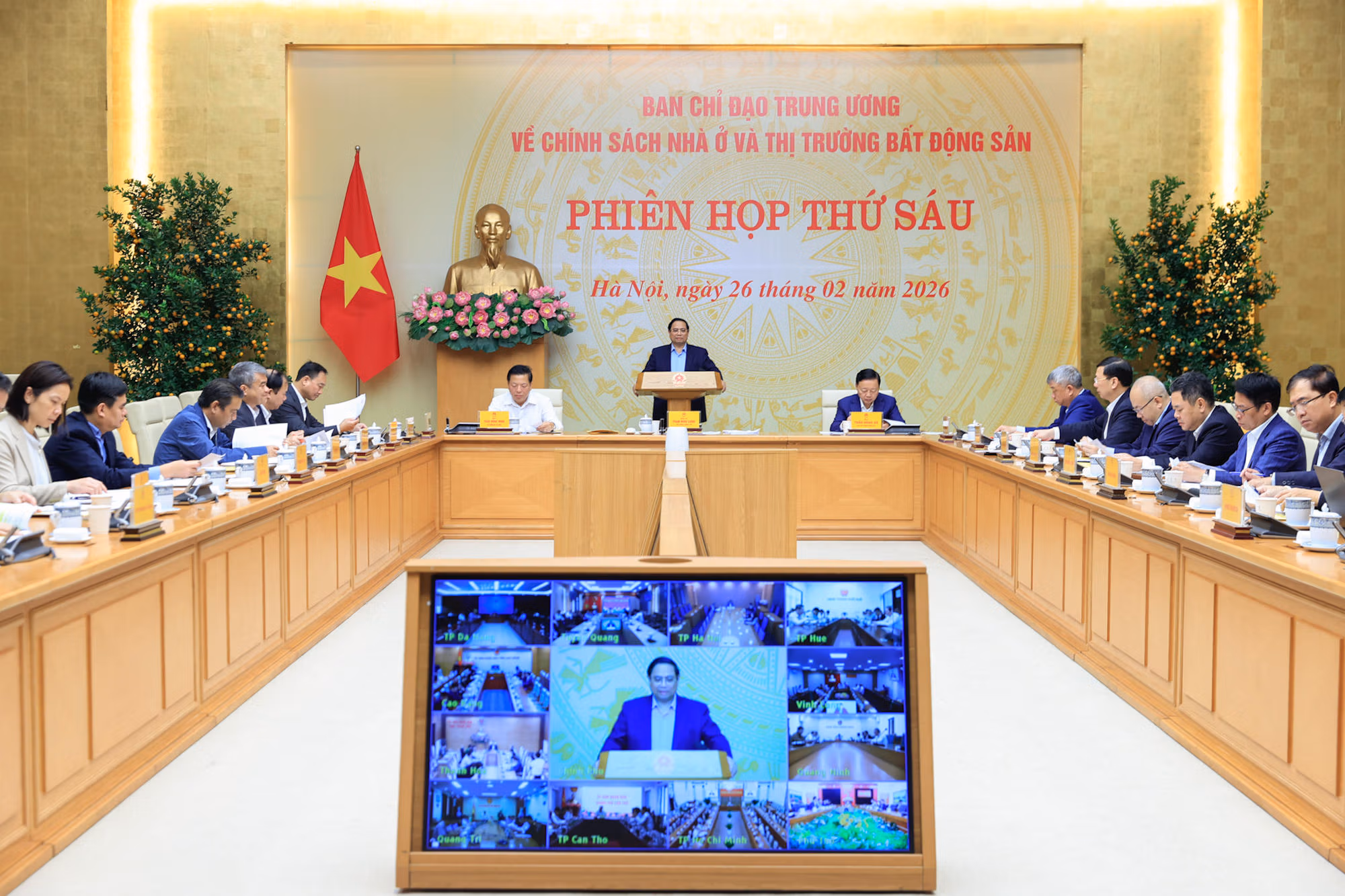 Sáng 26/2, Thủ tướng Chính phủ Phạm Minh Chính, Trưởng Ban Chỉ đạo Trung ương về chính sách nhà ở và thị trường bất động sản, chủ trì Phiên họp thứ 6 của Ban Chỉ đạo để rà soát, đánh giá thực hiện các nhiệm vụ đề ra tại Phiên họp thứ 5, đặc biệt là thảo luận về chính sách cho phân khúc nhà ở đối với người có thu nhập trung bình.