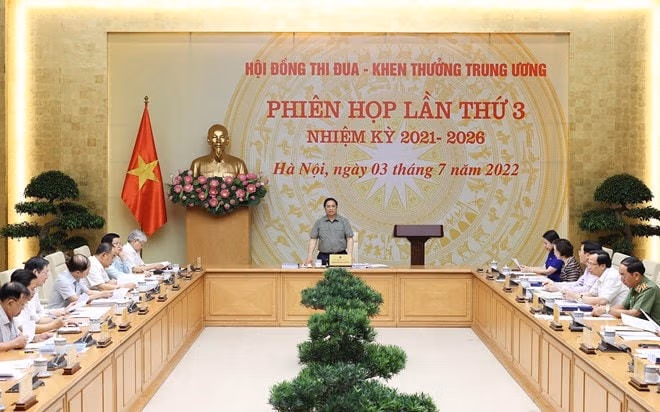Sáng 3/7, tại Trụ sở Chính phủ, Hội đồng Thi đua-Khen thưởng Trung ương nhiệm kỳ 2021-2026 (Hội đồng) họp phiên thứ 3 dưới sự chủ trì của Thủ tướng Chính phủ Phạm Minh Chính, Chủ tịch Hội đồng.