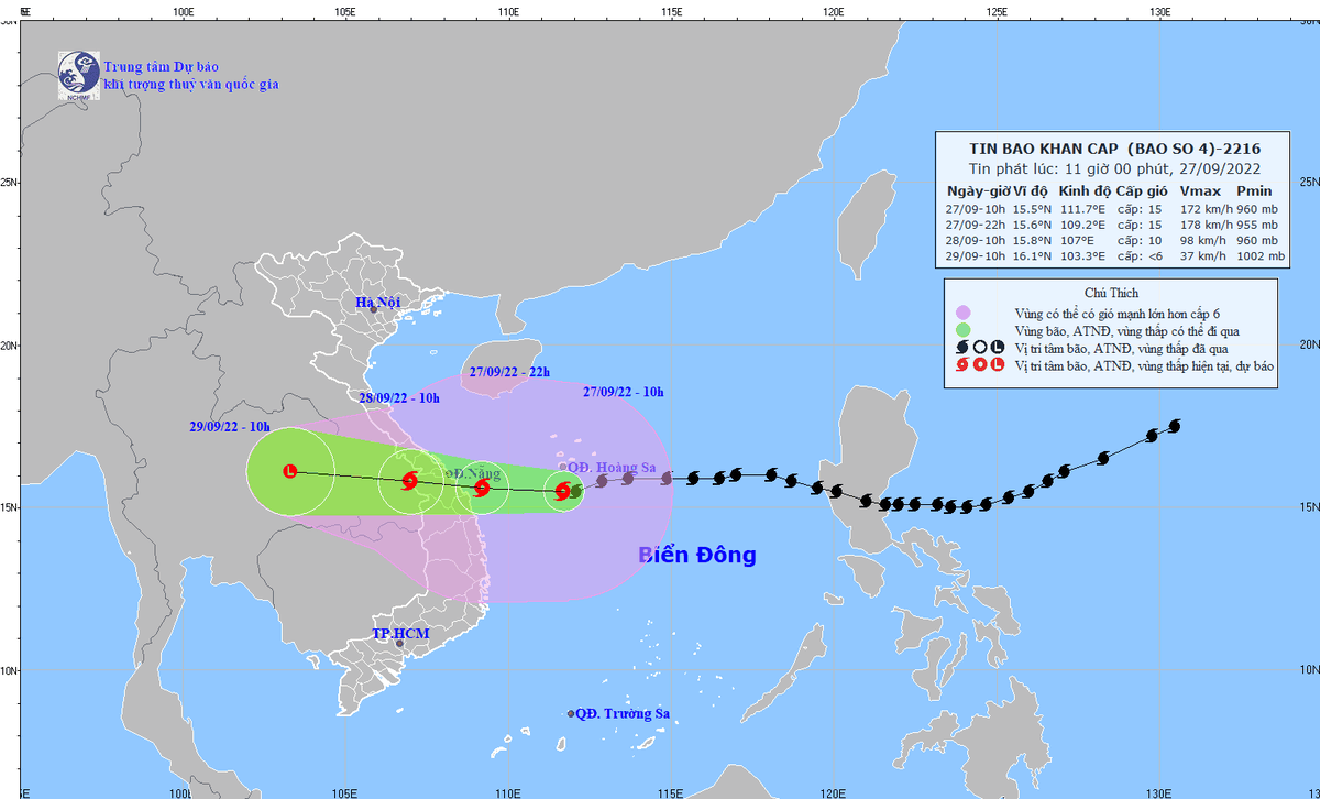 Bão số 4 dự báo với cường độ rất mạnh, sức tàn phá lớn, đang di chuyển nhanh về phía vùng biển và đất liền nước ta. Thủ tướng Chính phủ Phạm Minh Chính tiếp tục có Công điện số 865/CĐ-TTg ngày 27/9/2022 yêu cầu các bộ ngành, địa phương tập trung ứng phó khẩn cấp với cơn bão này.