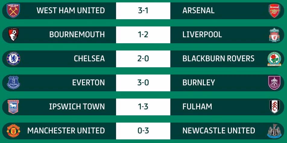 Các bàn thắng của West Ham ở trận này đến từ Ben White (16' og), Mohammed Kudus (50') và Jarrod Bowen (60'). Bàn danh dự của Arsenal ở trận derby London được thực hiện bởi Martin Odegaard (90+6').