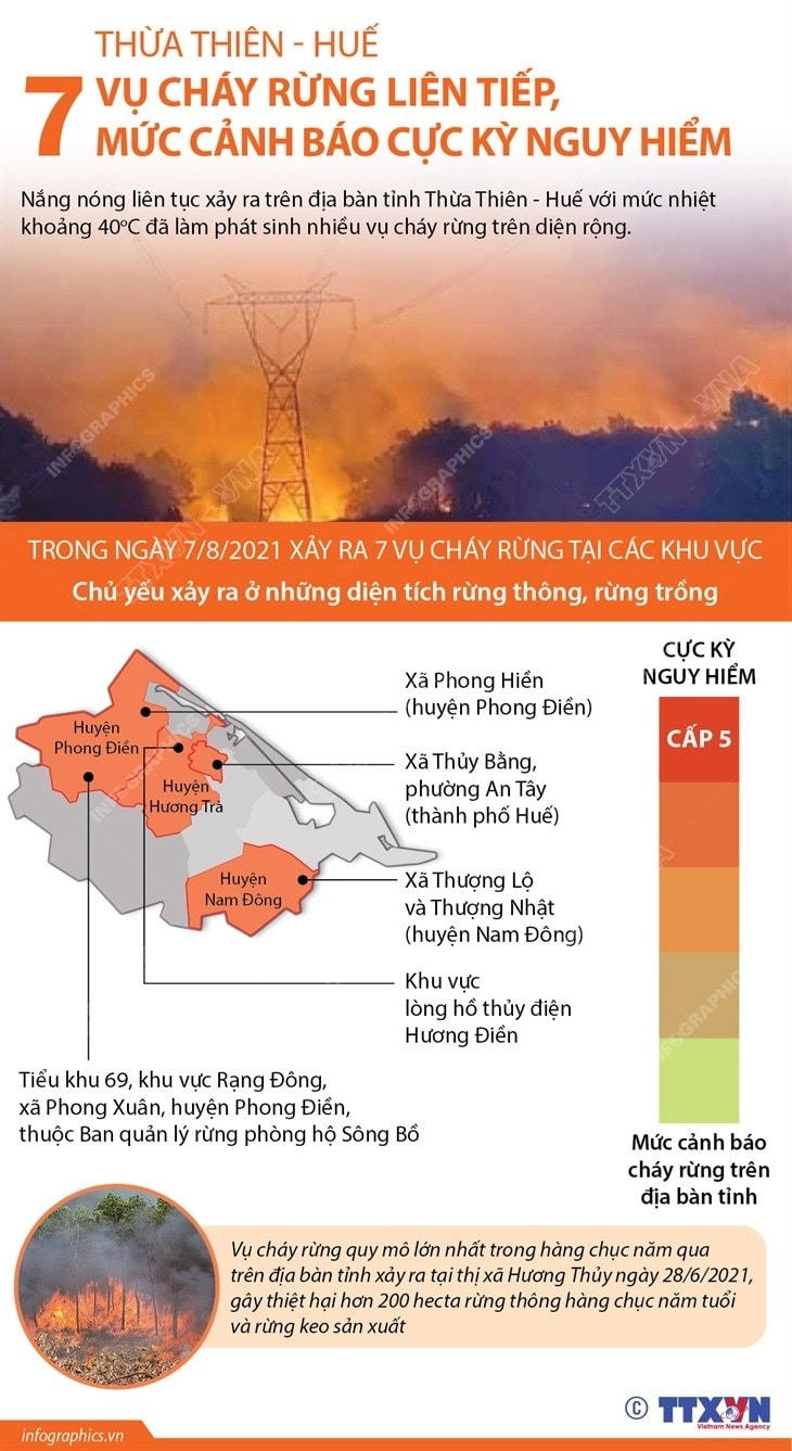 Thừa Thiên-Huế: 7 vụ cháy rừng liên tiếp, cảnh báo cực kỳ nguy hiểm
