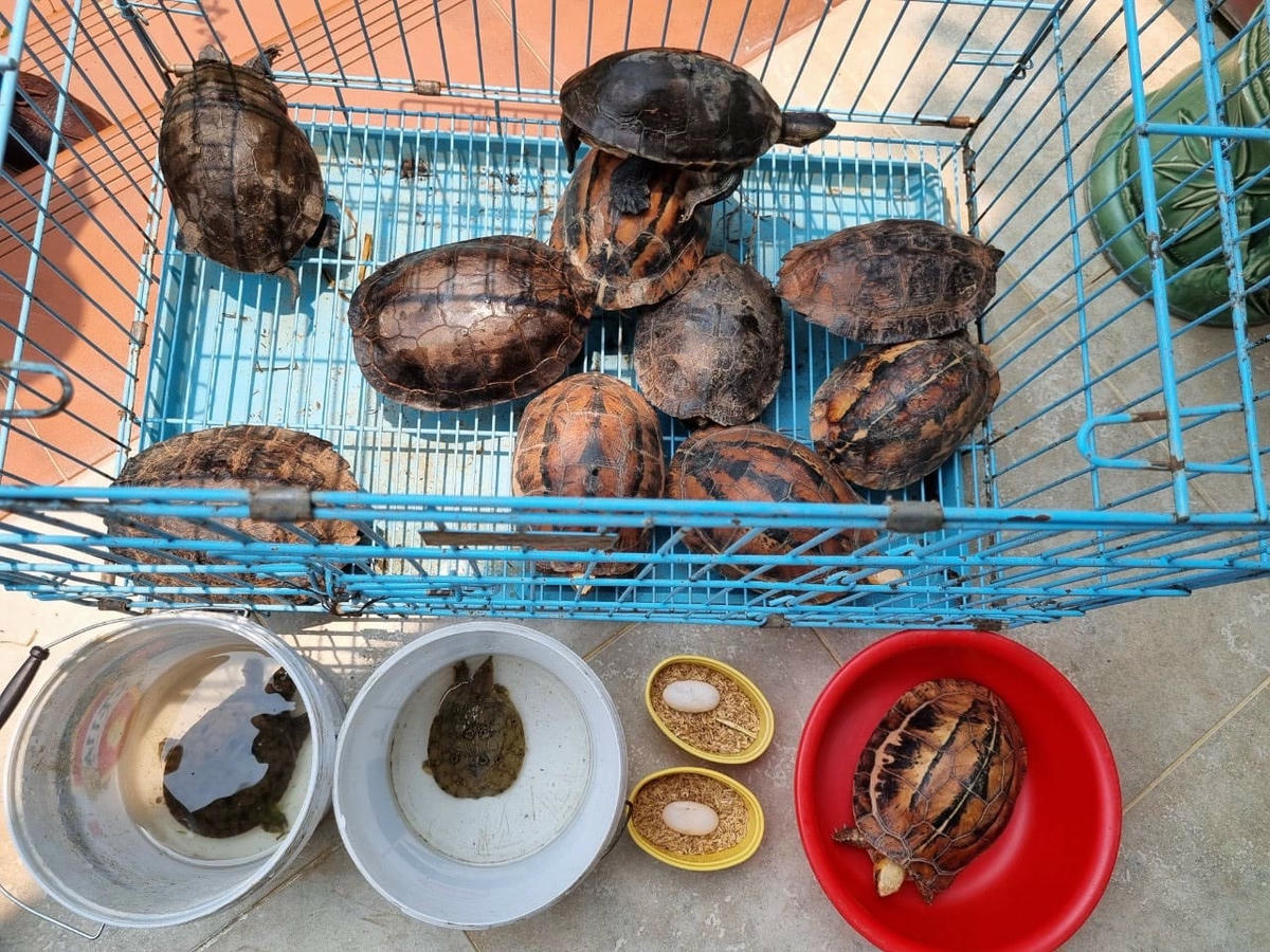 Trong số các cá thể động vật được người dân tự nguyện giao nộp, có 5 cá thể Rùa hộp trán vàng miền Trung “Cuora bourreti” đây là loài động vật rừng quý hiếm thuộc nhóm IB. Loài động vật quý hiếm này đang được pháp luật bảo vệ và nghiêm cấm khai thác, sử dụng, mua bán, tiêu thụ dưới mọi hình thức.