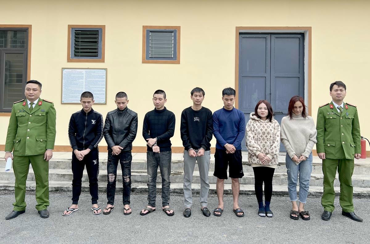 Các đối tượng được xác định, gồm: Trần Thị Thủy (24 tuổi), Phan Thị Minh Nguyệt (24 tuổi), Nguyễn Văn Hải (31 tuổi, cùng trú tại xã Lâm Trung Thuỷ, huyện Đức Thọ, tỉnh Hà Tĩnh); Bùi Huy Quyến (27 tuổi), Nguyễn Văn Diễn (21 tuổi, cùng trú tại xã Thanh Bình Thịnh, huyện Đức Thọ); Lê Trung Đức (28 tuổi, trú tại xã Bùi La Nhân, huyện Đức Thọ) và Trần Văn Quốc (21 tuổi, trú tại xã Kim Song Trường, huyện Can Lộc, tỉnh Hà Tĩnh).