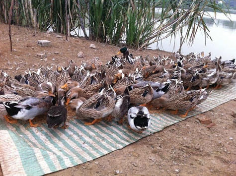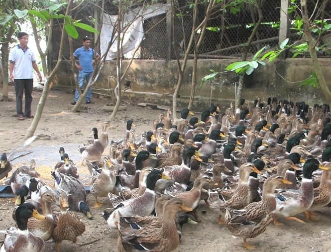 Ngoài việc chăn thả vịt tự nhiên trên suối, anh Hà Văn Sinh còn thuê nhân công đào 3 vuông ao, dùng cọn (hay còn gọi là guồng nước, bánh xe nước) để dẫn nước suối lên các ao. Dưới tán cây rừng, anh Sinh xây những chuồng nuôi kiên cố, chia thành các ô lớn nhỏ để nuôi vịt thịt, vịt đẻ trứng, vịt giống...