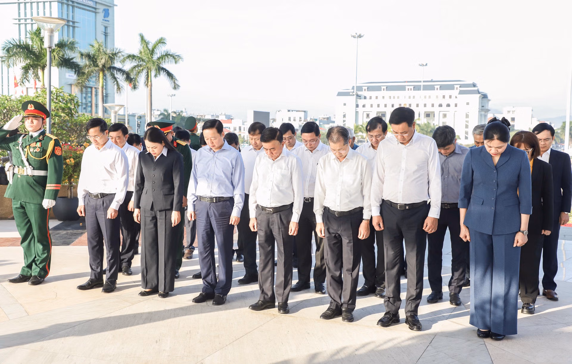 Cùng đi có Bí thư Trung ương Đảng, Chánh án Tòa án Nhân dân Tối cao Nguyễn Văn Quảng; Phó Thủ tướng Chính phủ Trần Hồng Hà; Ủy viên Trung ương Đảng, Tổng Thư ký Ủy ban Trung ương MTTQ Việt Nam Hà Thị Nga; Bí thư Thành ủy Đà Nẵng Lê Ngọc Quang; Chủ tịch UBND thành phố Phạm Đức Ấn; Chủ tịch Ủy ban MTTQ Việt Nam thành phố Lê Trí Thanh cùng lãnh đạo các bộ, ban, ngành và lãnh đạo TP Đà Nẵng.