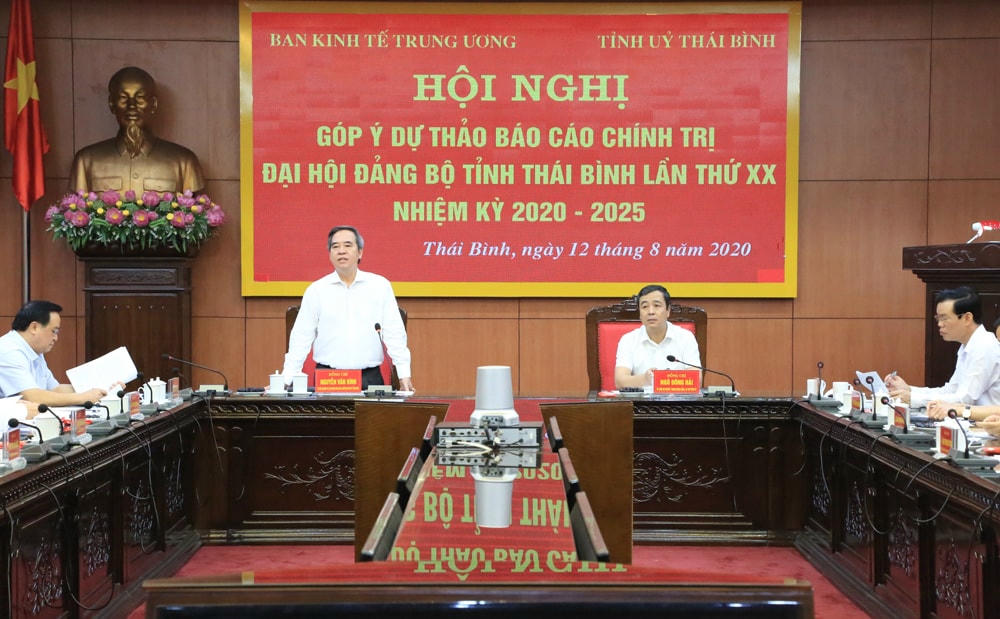 Ngày 12/8, Ủy viên Bộ Chính trị, Bí thư Trung ương Đảng, Trưởng Ban Kinh tế Trung ương Nguyễn Văn Bình cùng đoàn công tác của Ban Kinh tế Trung ương có buổi làm việc với Ban Thường vụ Tỉnh ủy Thái Bình về góp ý xây dựng Dự thảo văn kiện trình Đại hội Đại biểu Đảng bộ tỉnh Thái Bình lần thứ XX, nhiệm kỳ 2020-2025.
