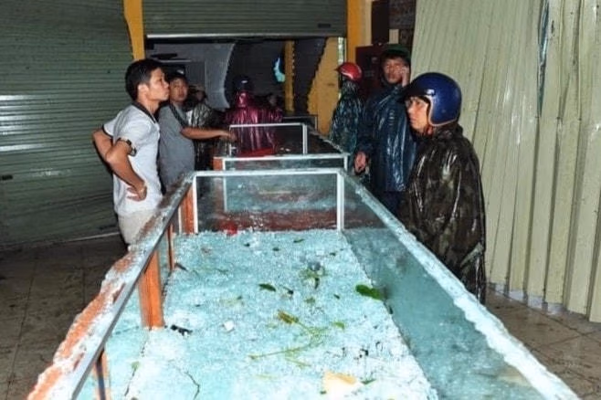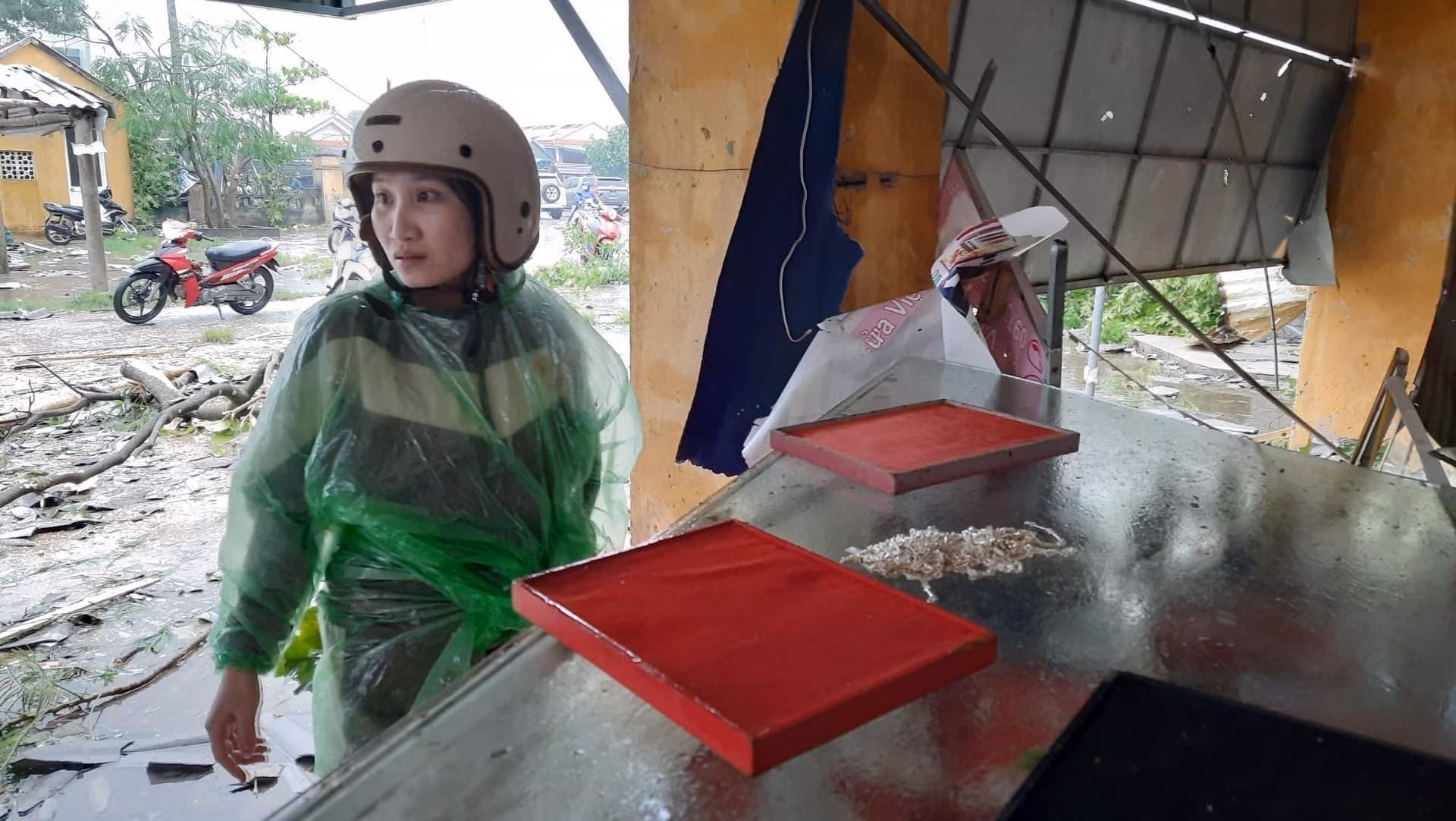Chiều ngày 27/9, tiệm vàng Phước Thịnh (thị trấn Cửa Việt, huyện Gio Linh, tỉnh Quảng Trị) của chị Ngô Hải Yến (36 tuổi) bị cơn lốc quét ngang trong lúc cả gia đình đang dọn dẹp, rào chắn cửa hàng để về nhà tránh bão.