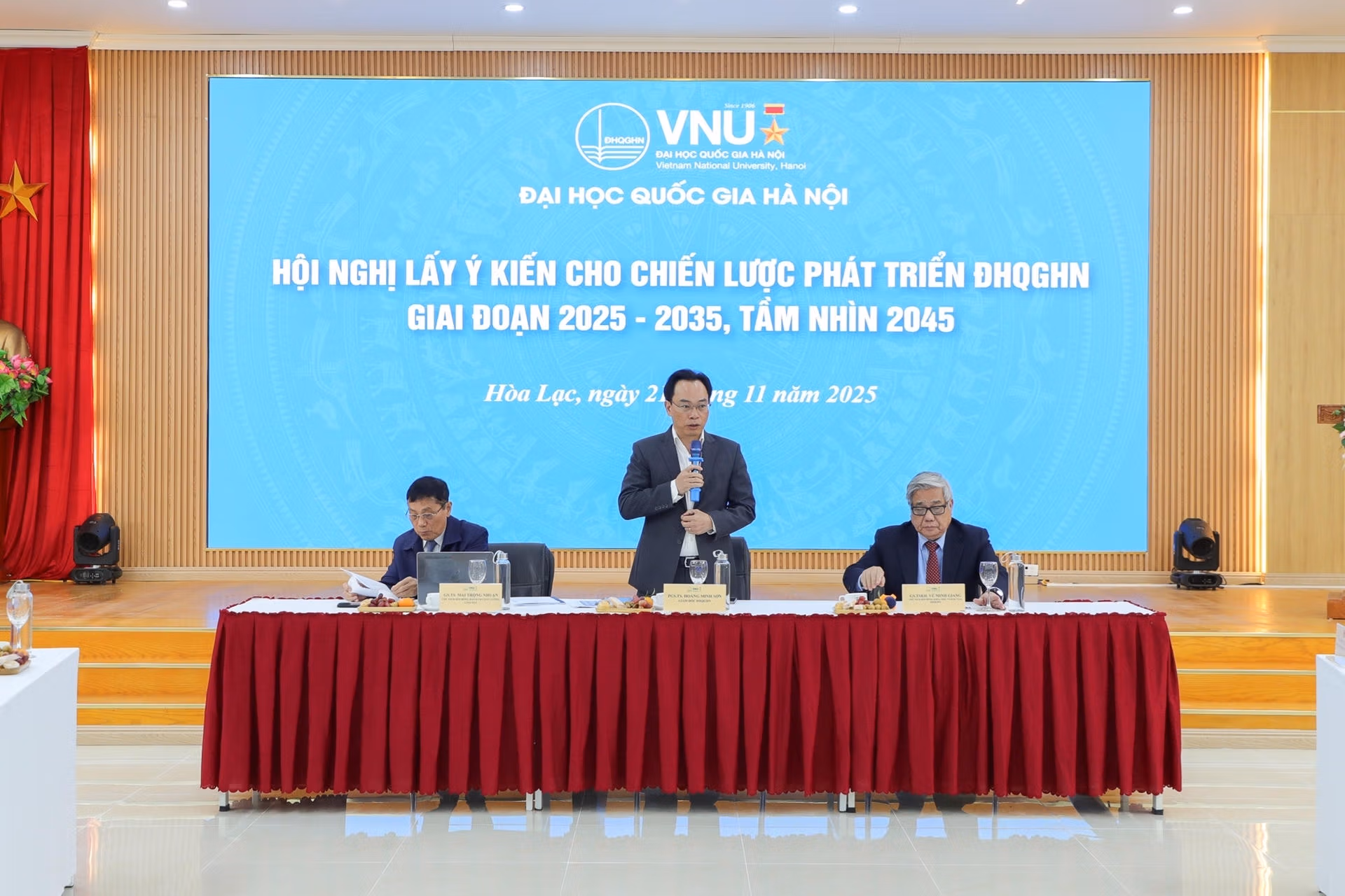 Giám đốc Đại học Quốc gia Hà Nội Hoàng Minh Sơn nhấn mạnh: “Với tinh thần đổi mới tư duy, hành động quyết liệt, tổ chức thực hiện hiệu quả, Đại học Quốc gia Hà Nội nhận thức rõ rằng việc triển khai các nghị quyết lớn của Đảng không chỉ là nhiệm vụ chính trị thường xuyên, mà còn là sứ mệnh, trách nhiệm và cơ hội để khẳng định vai trò, vị thế của một trung tâm đào tạo, nghiên cứu khoa học và đổi mới sáng tạo hàng đầu của đất nước.