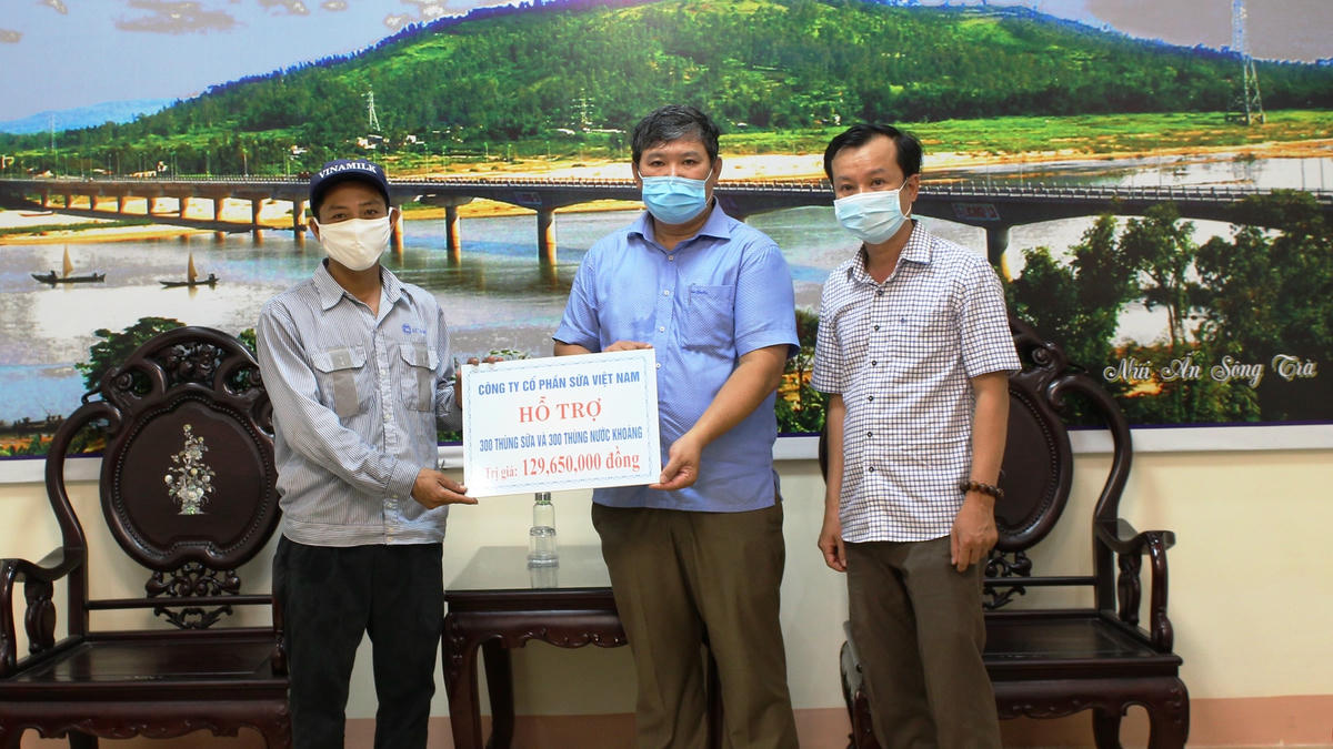 Công ty Cổ phần Sữa Việt Nam ủng hộ 300 thùng sữa và 300 thùng nước khoáng cho người dân đang cách ly và các cán bộ, chiến sỹ đang làm nhiệm vụ trên địa bàn tỉnh Quảng Ngãi.