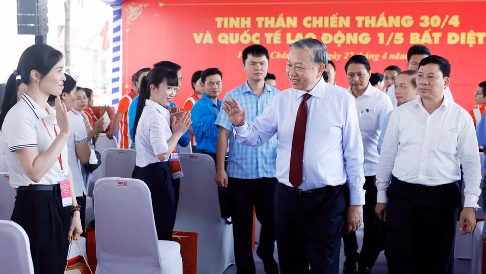 Nhân dịp kỷ niệm Ngày Giải phóng miền Nam, thống nhất đất nước (30/4) và Ngày Quốc tế Lao động (1/5), trong chương trình công tác tại Thành phố Hồ Chí Minh, sáng 27/4, Tổng Bí thư, Chủ tịch nước Tô Lâm cùng Đoàn công tác của Trung ương đã có buổi gặp gỡ, động viên công nhân, người lao động thành phố.
