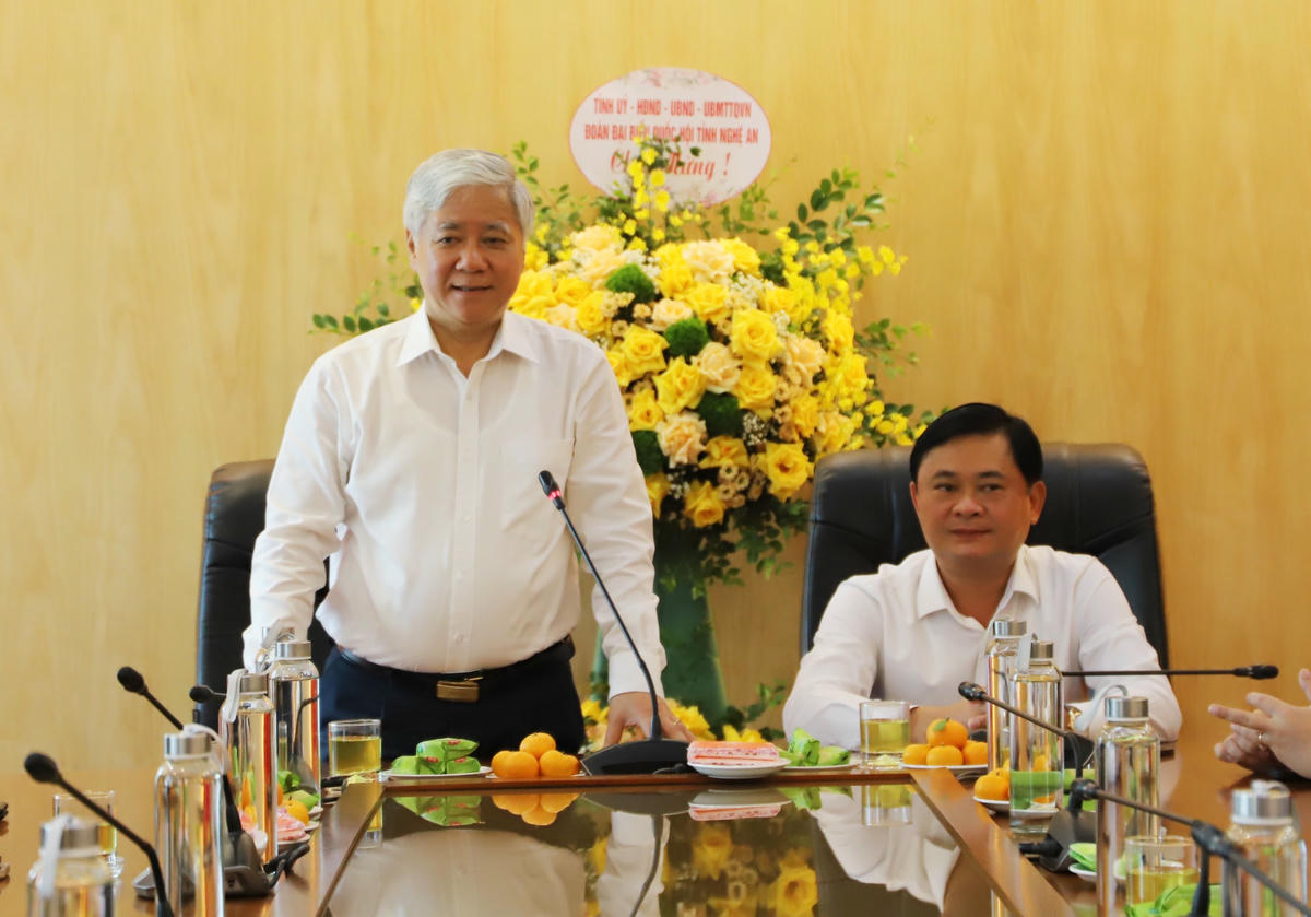 Nhân dịp này, Bí thư Tỉnh ủy Nghệ An cũng trân trọng cảm ơn UBTƯ MTTQ Việt Nam trong suốt thời gian vừa qua đã quan tâm, hỗ trợ giúp đỡ hoạt động của MTTQ tỉnh Nghệ An, đoàn ĐBQH tỉnh Nghệ An; đồng thời mong muốn tiếp tục nhận được sự quan tâm, giúp đỡ của Đảng đoàn, Ban Thường trực UBTƯ MTTQ Việt Nam, để Mặt trận các cấp và các tổ chức thành viên trong tỉnh tiếp tục phát huy vai trò của mình trong tăng cường và phát huy sức mạnh khối đại đoàn kết toàn dân tộc, đóng góp tích cực vào sự nghiệp xây dựng và phát triển tỉnh Nghệ An.