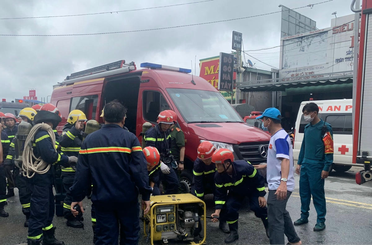 Trước đó không lâu, lực lượng chuyên nghiệp từ TP HCM tiếp viện chữa cháy, cứu nạn với nhiều phương tiện hiện đại đã thâm nhập vào bên trong các căn phòng còn lại để đưa các thi thể ra ngoài.