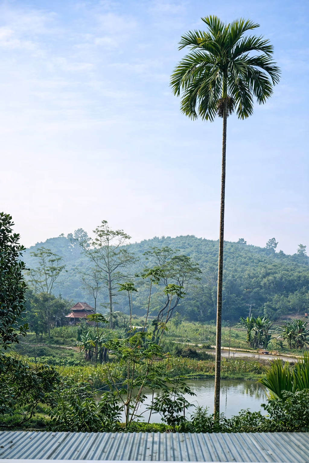 Quanh co đường bê tông len lỏi giữa cơ man đồi thấp. Xóm Gốc Gạo vắng vẻ chiều cuối năm. Hoa đào loáng thoáng trong cái rét tràn về xóm núi. Ở đây ai cũng biết “Nhà bia Tố Hữu” nhưng phóng viên Đại đoàn kết phải nhiều lần hỏi đường mới tìm đến nơi. Keo xanh phủ đồi, ruộng ven dải khắp ngô non, vệ đường nhiều ván bóc phơi la liệt. Cảm nhận sơn cước trung du thuở xưa (xã Gia Điền, huyện Hạ Hòa, tỉnh Phú Thọ cũ) đoàn văn nghệ sỹ hành trình kháng chiến đã chọn nơi đặt trụ sở hoạt động nghệ thuật, vừa an toàn vừa nên thơ.