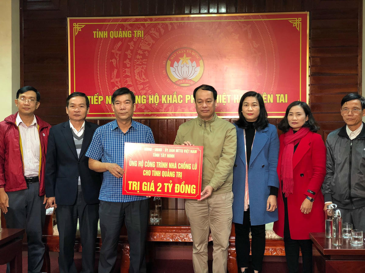 Tỉnh Tây Ninh ủng hộ nhân dân Quảng Trị 2 tỷ đồng xây nhà chống lũ