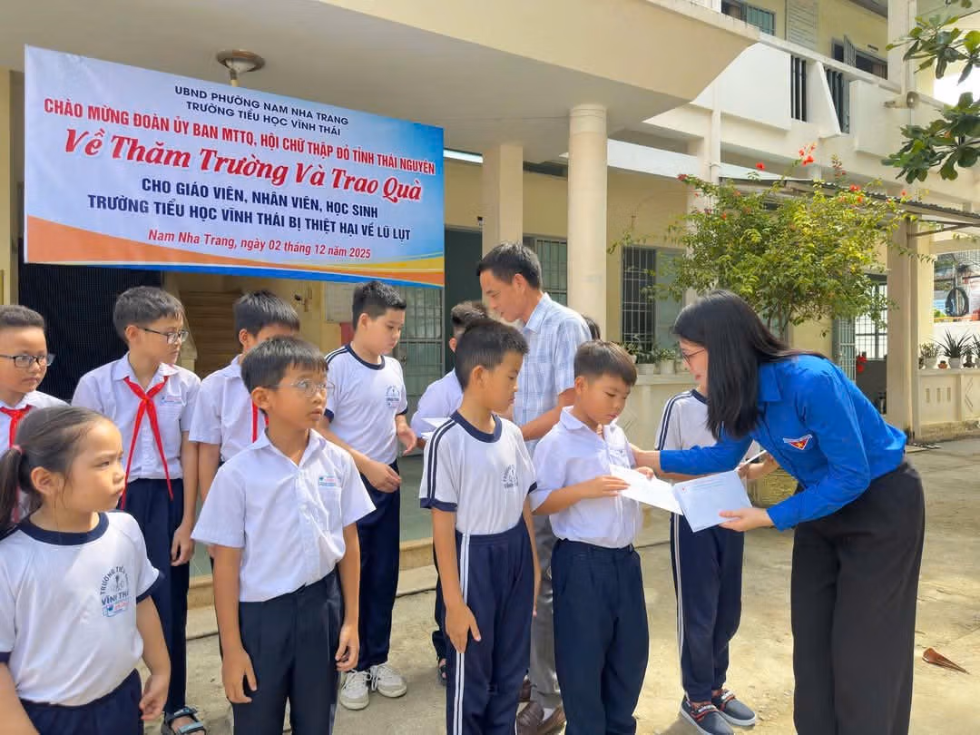 Phát huy tinh thần xung kích, trách nhiệm vì cộng đồng, Tỉnh đoàn – Hội LHTN Việt Nam tỉnh – Hội đồng đội tỉnh Thái Nguyên đã trao hỗ trợ Trường Tiểu học Diên Phước (xã Diên Thọ, tỉnh Khánh Hòa) với tổng kinh phí 100 triệu đồng để khắc phục hậu quả mưa lũ, sửa chữa cơ sở vật chất và bổ sung trang thiết bị học tập cho học sinh.