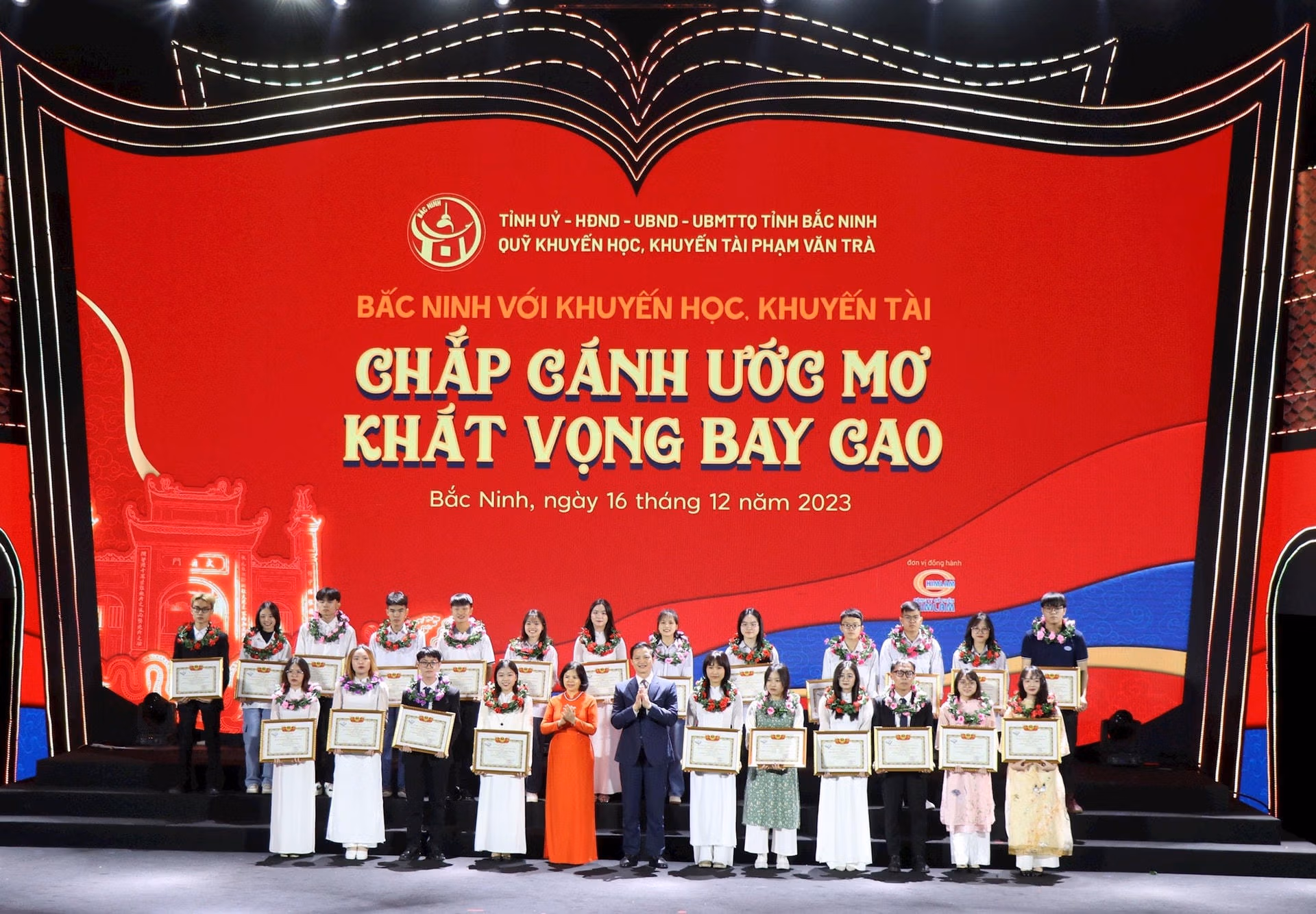 Tối 16/12, tại Trung tâm Văn hóa Kinh Bắc, Tỉnh ủy - HĐND - UBND - Ủy ban MTTQ tỉnh Bắc Ninh phối hợp với Quỹ Khuyến học, khuyến tài Phạm Văn Trà tổ chức Chương trình “Bắc Ninh với khuyến học, khuyến tài” năm 2023 với chủ đề “Chắp cánh ước mơ - Khát vọng bay cao”.