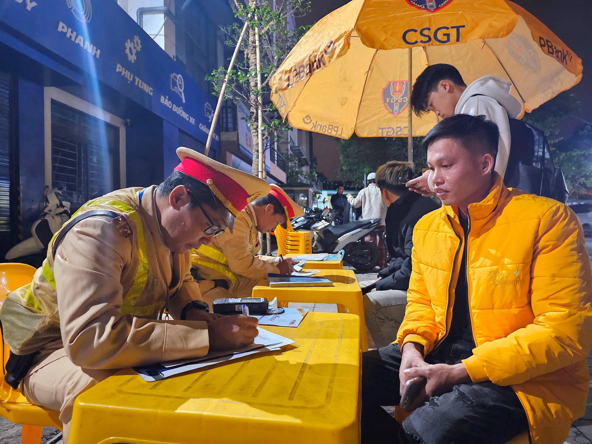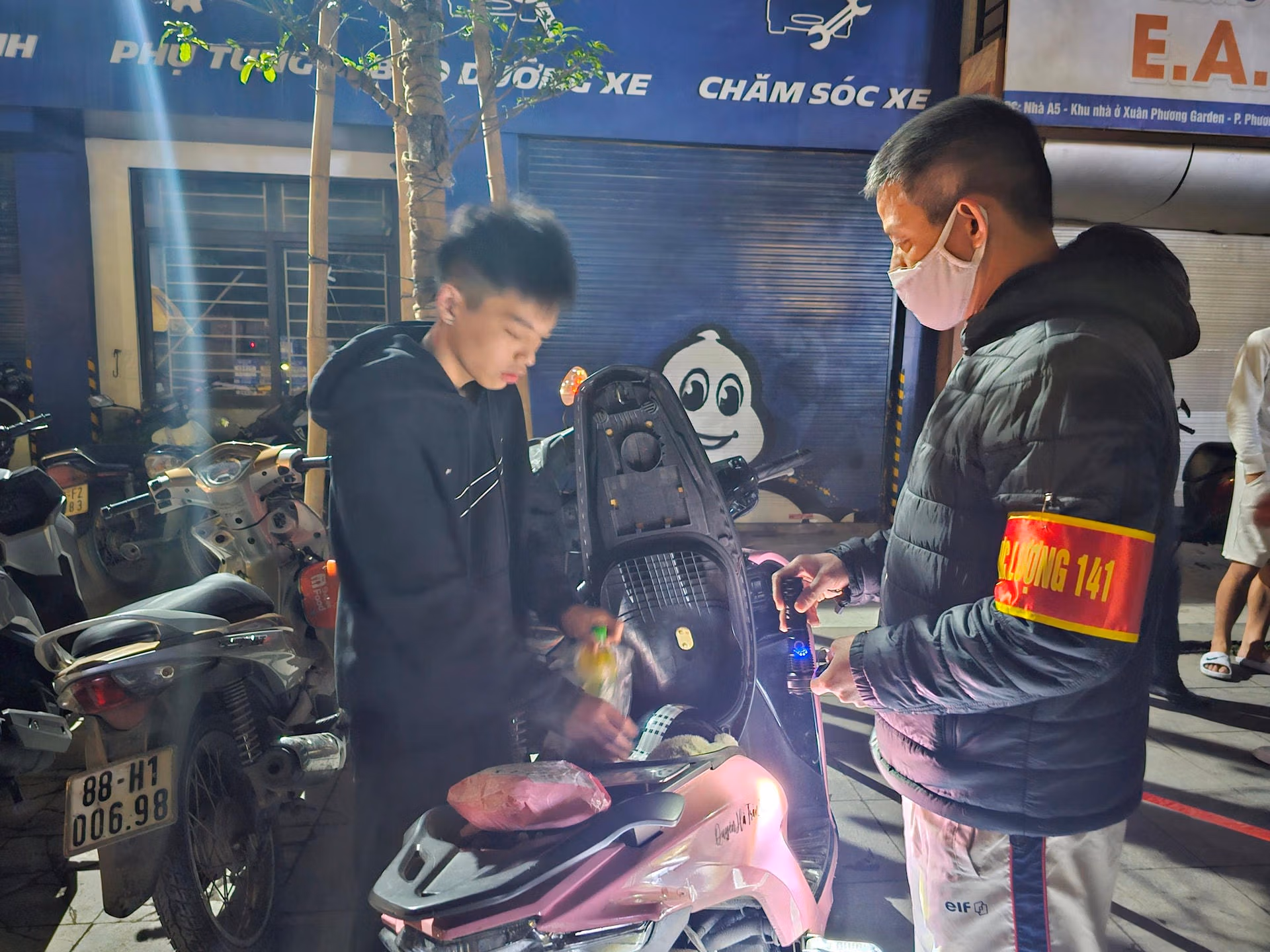Tổ công tác 141-H của Công an quận Nam Từ Liêm lập chốt xử lý vi phạm. Thiếu tá Hoàng Việt, cán bộ CSGT Công an quận Nam Từ Liêm phát biểu.Đêm 11, rạng sáng ngày 12/12, 2 Tổ công tác 141-H của Công an quận Nam Từ Liêm (Công an thành phố Hà Nội) (1 Tổ do Thượng úy Hoàng Minh Lâm, 1 Tổ do Đại úy Nghiêm Văn Công làm Tổ trưởng) lập chốt kiểm tra xử lý vi phạm tại ngã tư đường 70 và Trịnh Văn Bô. Đây được nhận định là khu vực phức tạp về trật tự an toàn giao thông, thường xuyên xảy ra tình trạng thanh thiếu niên tụ tập gây rối.Theo lãnh đạo Công an quận Nam Từ Liêm, hai tổ công tác 141-H của Công an quận Nam Từ Liêm được triển khai bao gồm: CSGT - Trật tự, Cảnh sát Hình sự, Kinh Tế, Ma tuý phối hợp với Công an phường sở tại. Lực lượng sẽ thực hiện phương thức công khai kết hợp hóa trang để đảm bảo hiệu quả công tác, xử lý vi phạm, khép kín địa bàn, thời gian kéo dài khoảng 4 tiếng, từ 22h đêm hôm trước đến 2h sáng hôm sau.Chỉ trong ít phút, Tổ công tác đã phát hiện, kiểm tra hàng loạt thanh thiếu niên không đội mũ bảo hiểm khi điều khiển xe, có biểu hiện lạng lách... Nhiều trường hợp khi phát hiện tổ công tác làm nhiệm vụ có ý định quay đầu xe bỏ chạy hoặc phóng nhanh né chốt nhưng đều bị chặn dừng xử lý.Trong đó, có trường hợp P.M.A.K., (14 tuổi, ở Định Công, Hoàng Mai, Hà Nội) xe không lắp biển số (để trong cốp xe), không giấy phép lái xe, không đội mũ bảo hiểm đã bị Tổ công tác lập biên bản tạm giữ phương tiện, phạt cảnh cáo, đồng thời lập biên bản xử phạt đối với chủ phương tiện giao xe cho người chưa đủ điều kiện điều khiển phương tiện tham gia giao thông với mức phạt 1.400.000 đồng, đồng thời tạm giữ phương tiện 7 ngày.Các trường hợp vi phạm sau khi bị phát hiện sẽ được kiểm tra kỹ người và phương tiện.Cán bộ Tổ công tác 141-H của Công an quận Nam Từ Liêm lập biên bản xử phạt đối với 1 thanh niên vi phạm nồng độ cồn trong đêm 11/12.Trong đêm 11, rạng sáng 12/12, Tổ công tác 141-H của Công an quận Nam Từ Liêm đã phát hiện xử lý tổng 12 trường hợp trong đó có 2 trường hợp vi phạm nồng độ cồn, 10 trường hợp không đội mũ bảo hiểm, 7 trường hợp không có giấy phép lái xe, 1 trường hợp không gắn biển số xe, 3 trường hợp không có đăng ký xe và 1 trường hợp từ đủ 14 tuổi đến dưới 16 tuổi điều khiển xe mô tô, đồng thời tạm giữ 9 xe mô tô.Các phương tiện được niêm phong, tạm giữ.