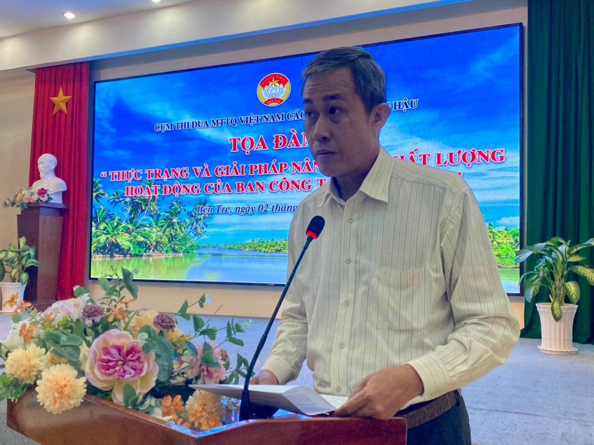 Phát biểu tại tọa đàm, ông Võ Văn Thiện, Trưởng Ban Công tác phía Nam cho rằng, các tham luận trình bày hội nghị đều sát thực tiễn, đã cung cấp rất nhiều mô hình mới, cách làm hay được triển khai thời gian qua ở từng ấp khóm khu dân cư cụ thể. Đặc biệt, ông Thiện cũng bày tỏ sự cảm ơn tới các các vị tham gia ở Ban công tác Mặt trận, bởi đây là những người gần dân nhất, vất vả nhất, gắn bó nhất, tâm huyết nhất với công tác mặt trận nhưng thu nhập cũng eo hẹp nhất. Nhưng vượt lên những điều kiện làm việc khó khăn, các thành viên của Ban công tác Mặt trận đã không quản ngày nắng đêm mưa truyền tải kịp thời các chủ trương chính sách, các cuộc vận động, phong trào tới đông đảo tầng lớp nhân dân. "Chúng ta có được các khu dân cư văn hóa, những con đường nông thôn xanh sạch đẹp, những khối dân cư đoàn kết, những xóm làng yên bình là nhờ có công đóng góp của những người làm ở Ban công tác Mặt trận.", ông Võ Văn Thiện chia sẻ.