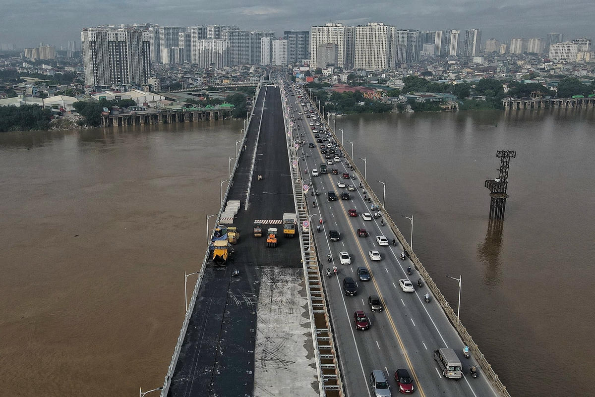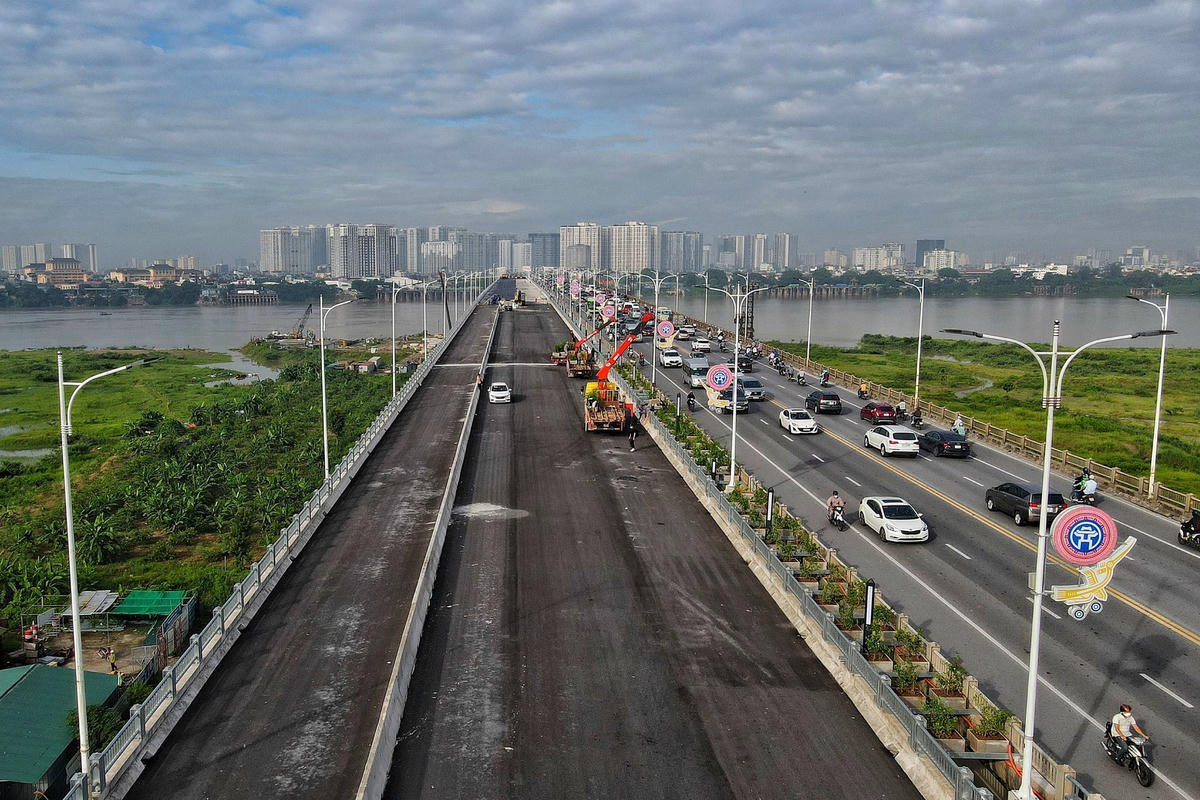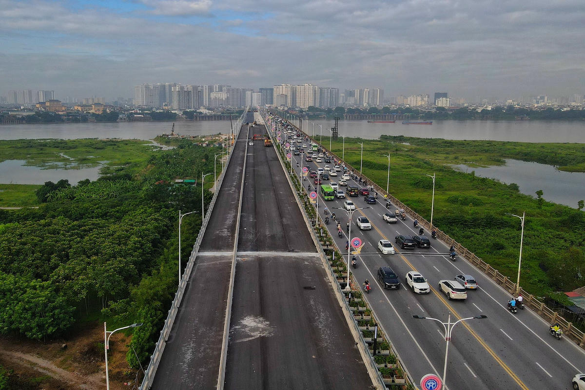 Dự án cầu Vĩnh Tuy (giai đoạn 2) khởi công tháng 1/2021 với tổng mức đầu tư hơn2.500 tỷ đồng. Đến nay, dự án đã cơ bản hoàn thành các hạng mục chính, hiện nhà thầu đang hoàn thiện hệ thống chiếu sáng và cảnh quan để thông xe trước ngày 2/9 năm nay.