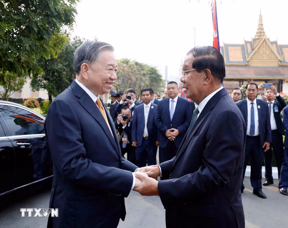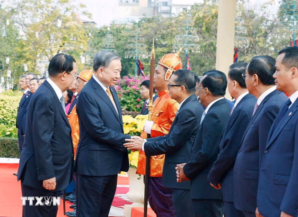 Sáng 6/2/2026, Lễ đón Tổng Bí thư Tô Lâm và Đoàn đại biểu cấp cao Việt Nam thăm cấp Nhà nước tới Vương quốc Campuchia được tổ chức trọng thể tại Hoàng cung ở Thủ đô Phnom Penh.