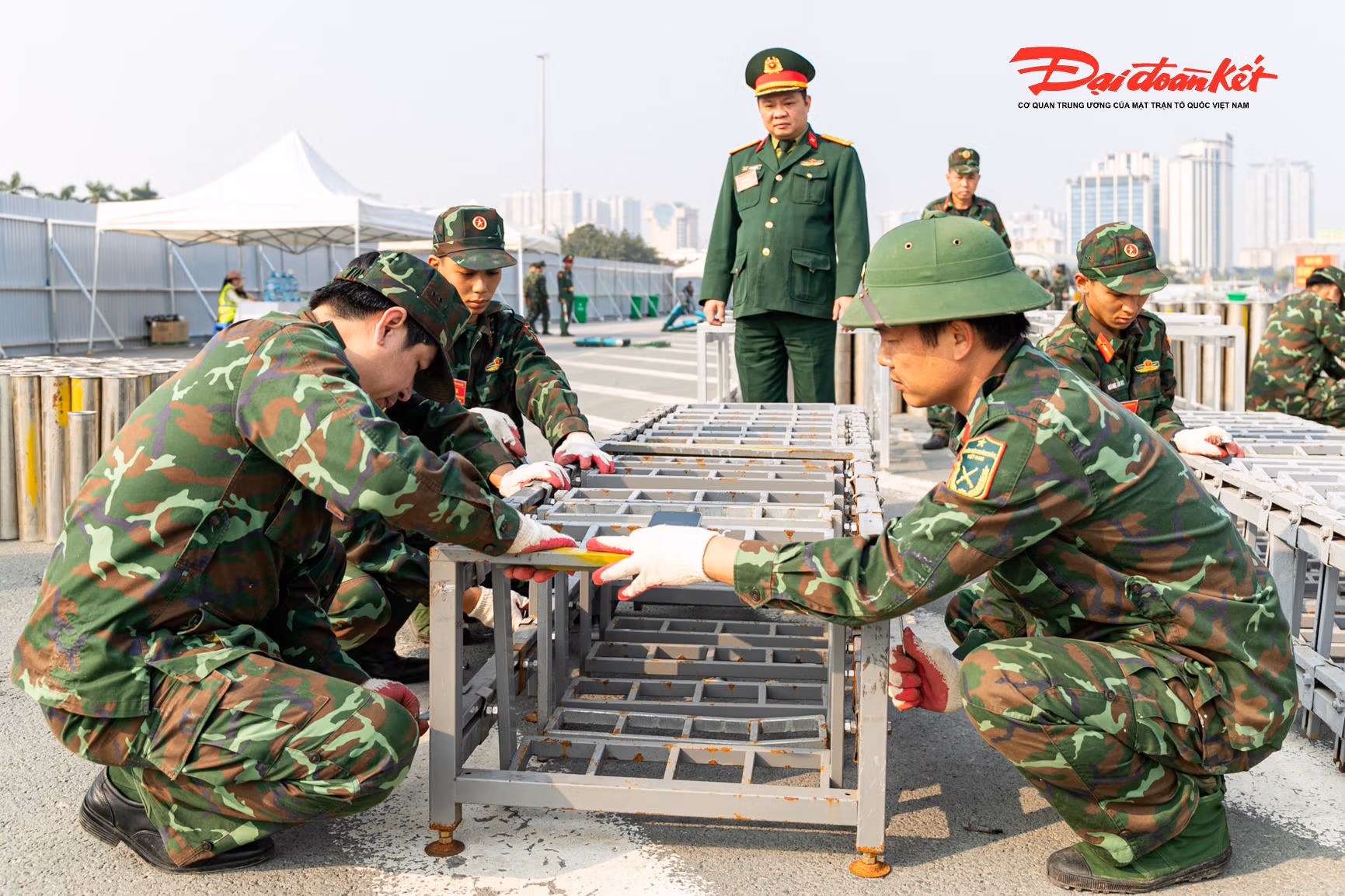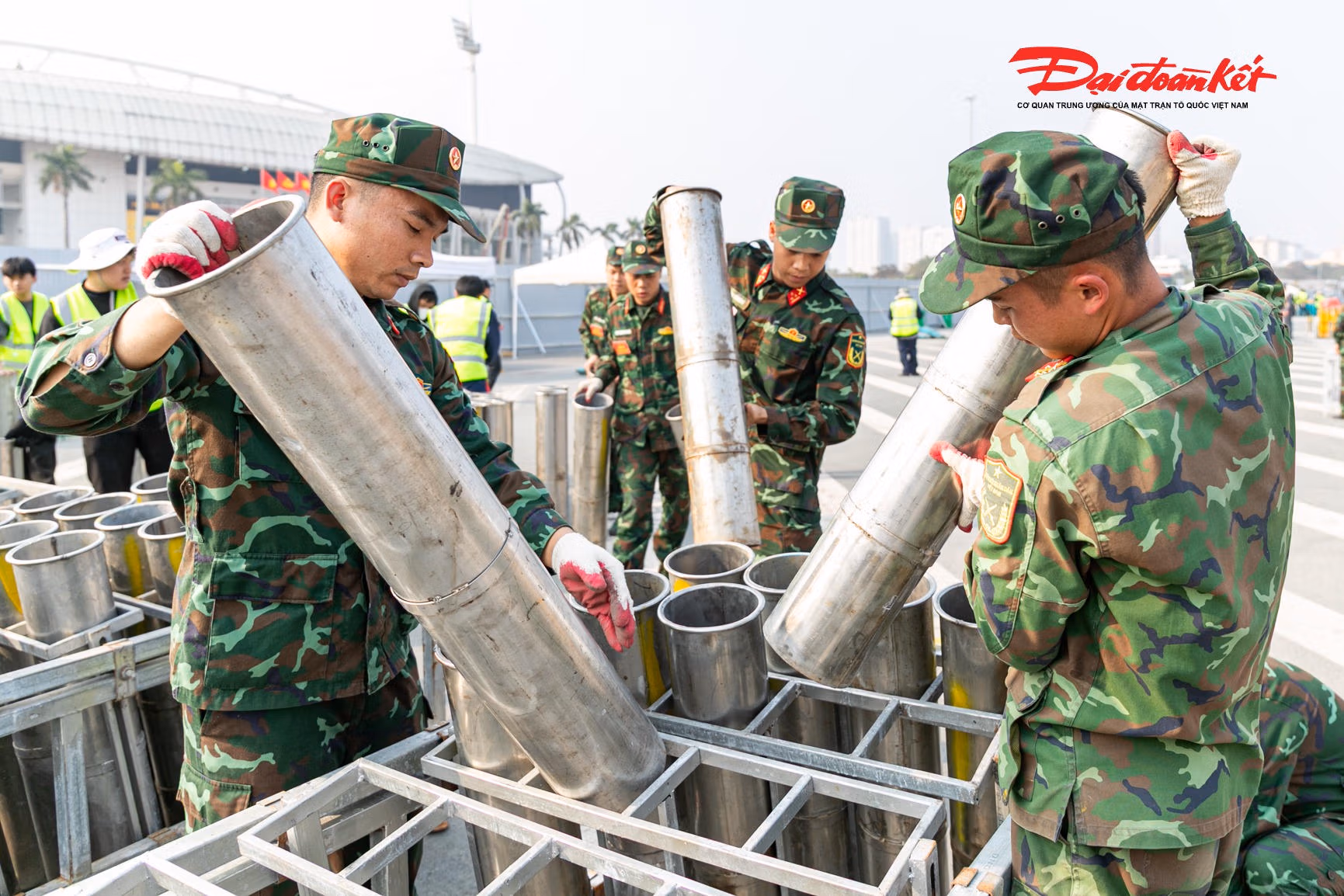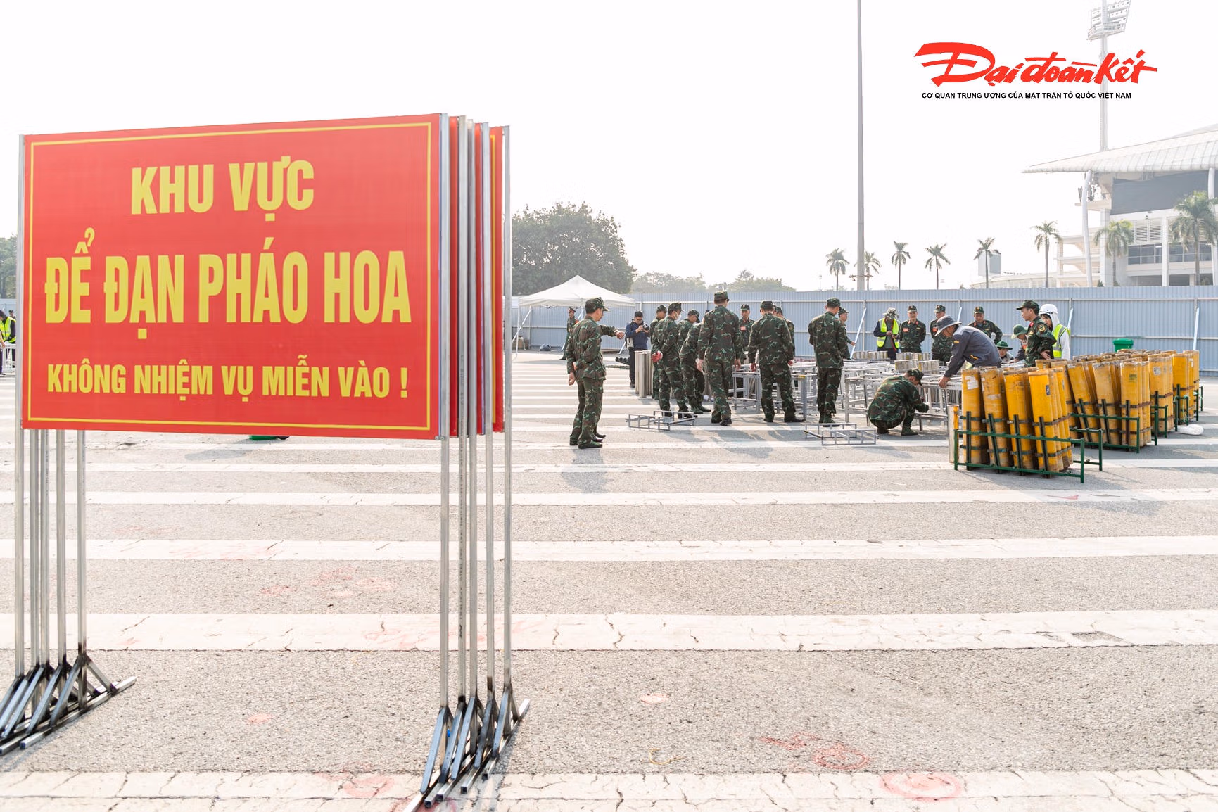 Toàn cảnh trận địa pháo hoa đang được lắp đặt ở Mỹ Đình, chào mừng Đại hội XIV của Đảng