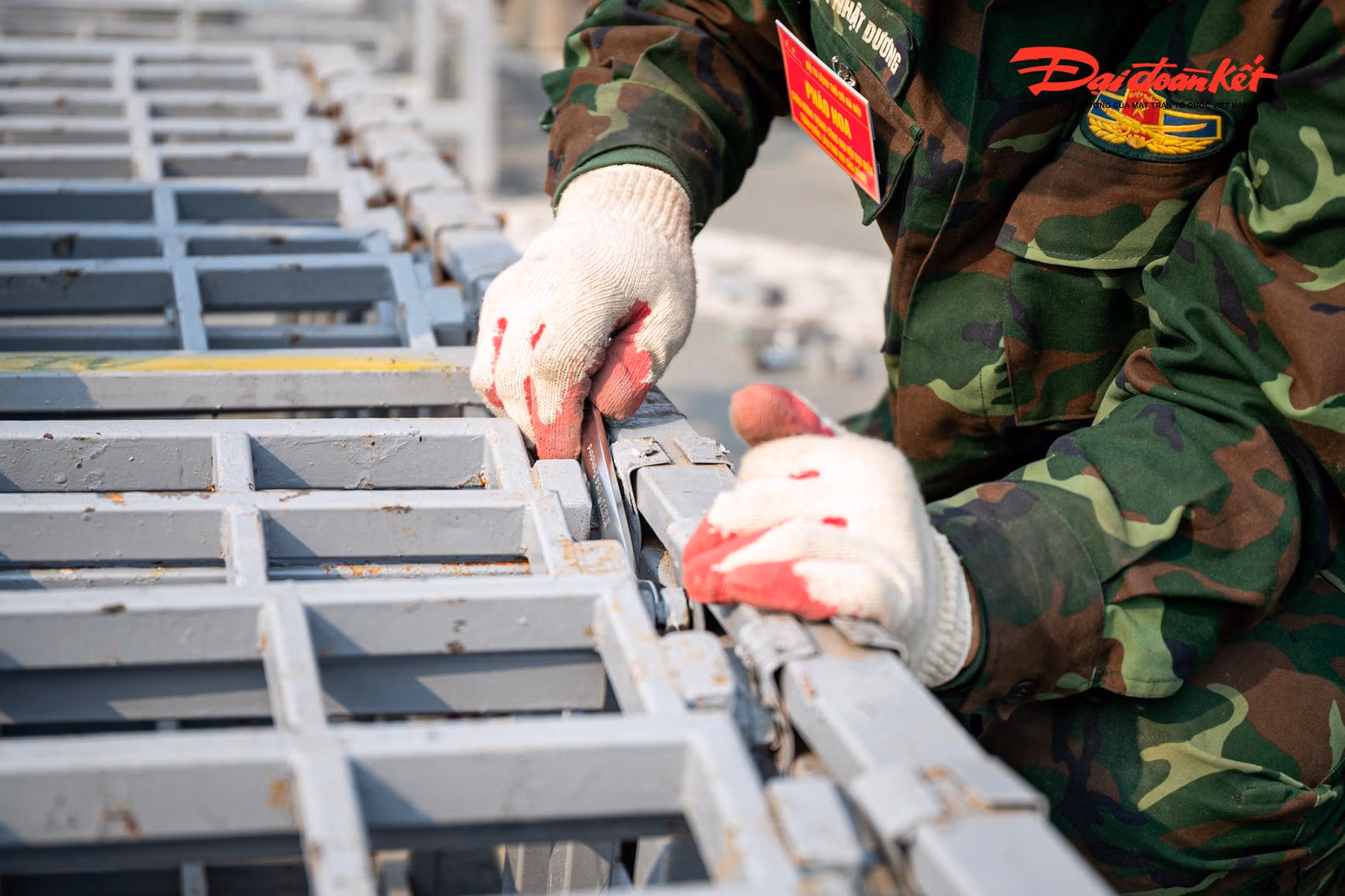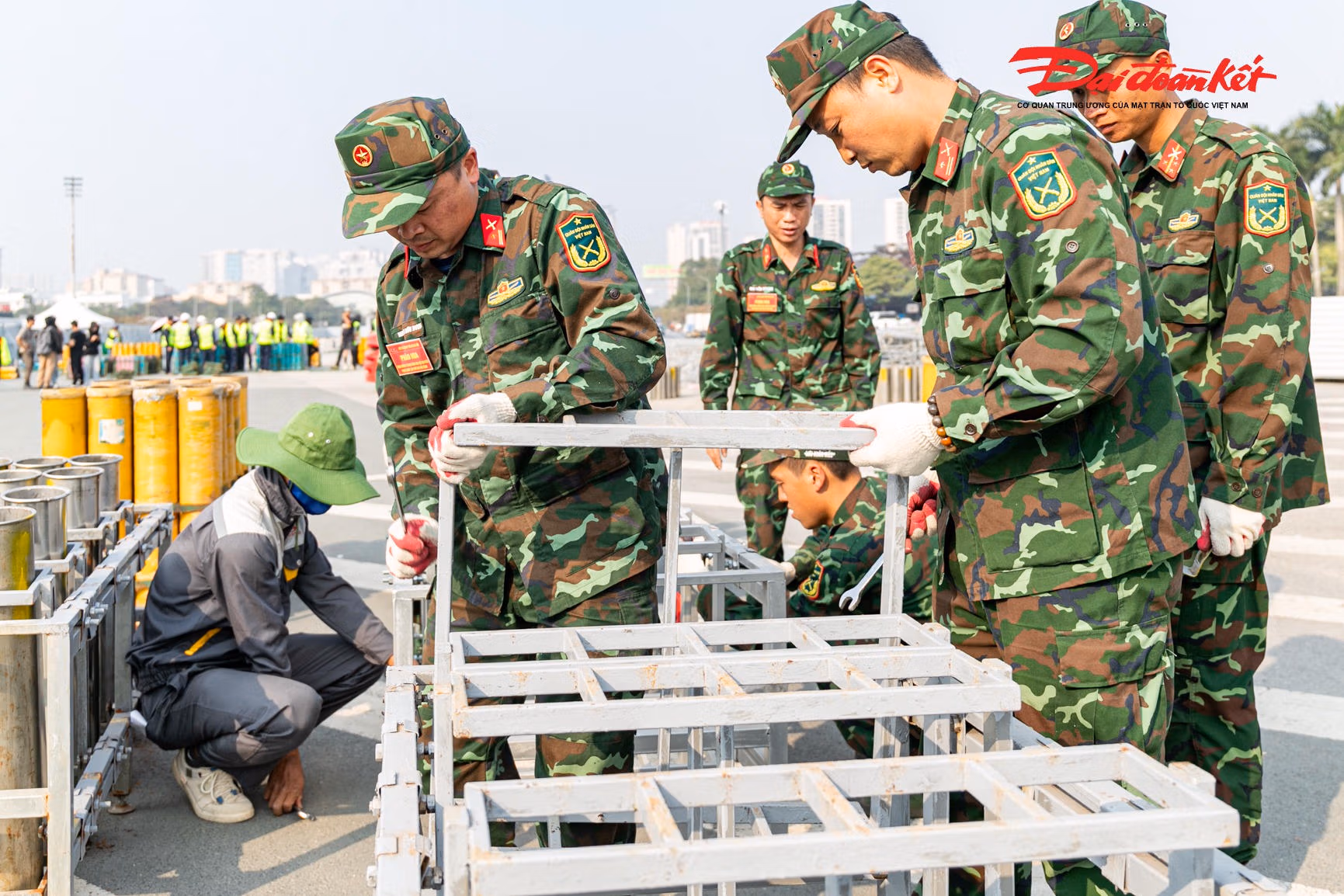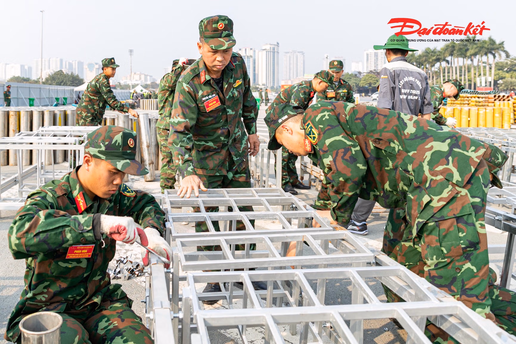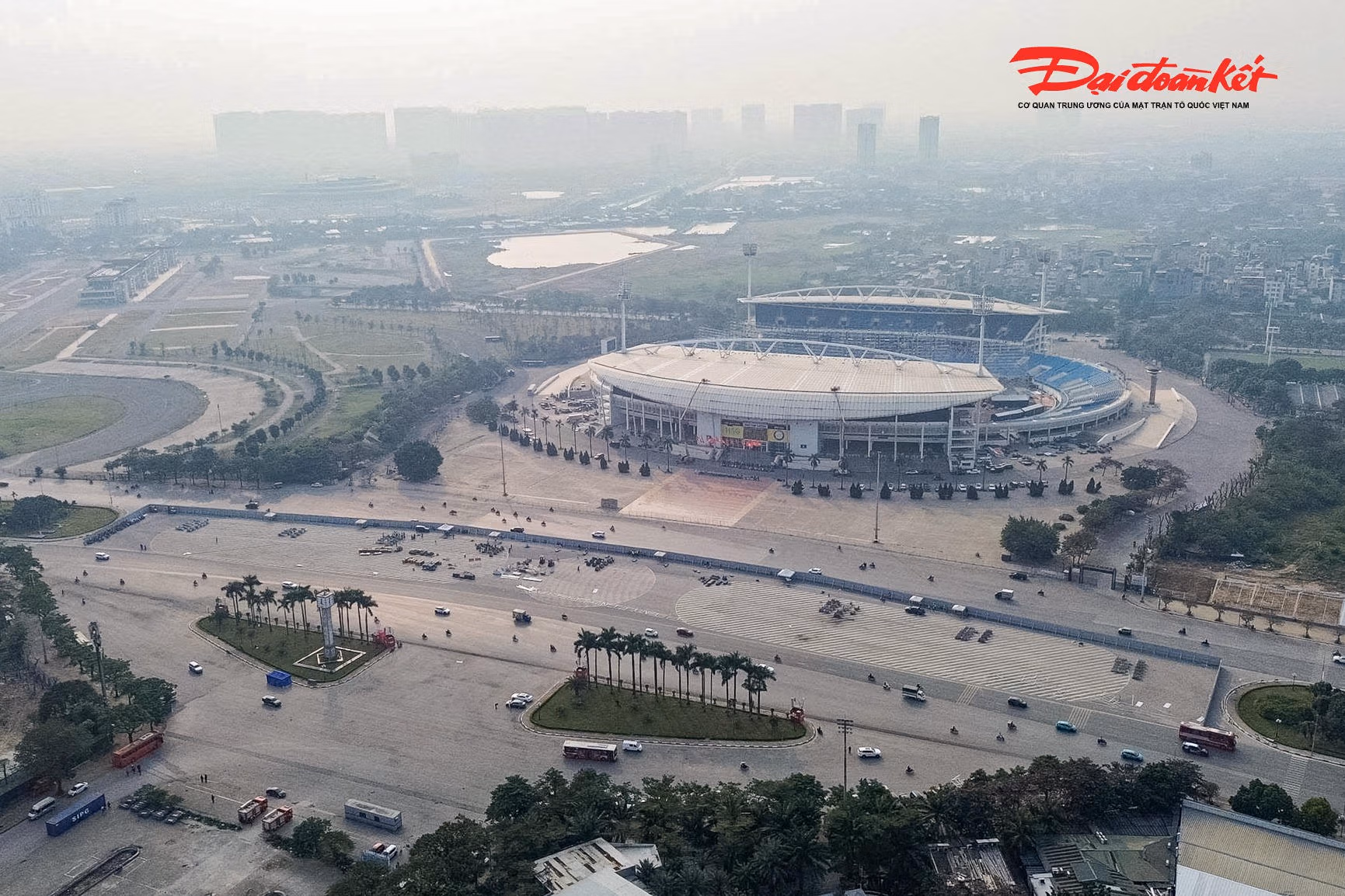 Toàn cảnh trận địa pháo hoa đang được lắp đặt ở Mỹ Đình, chào mừng Đại hội XIV của Đảng
