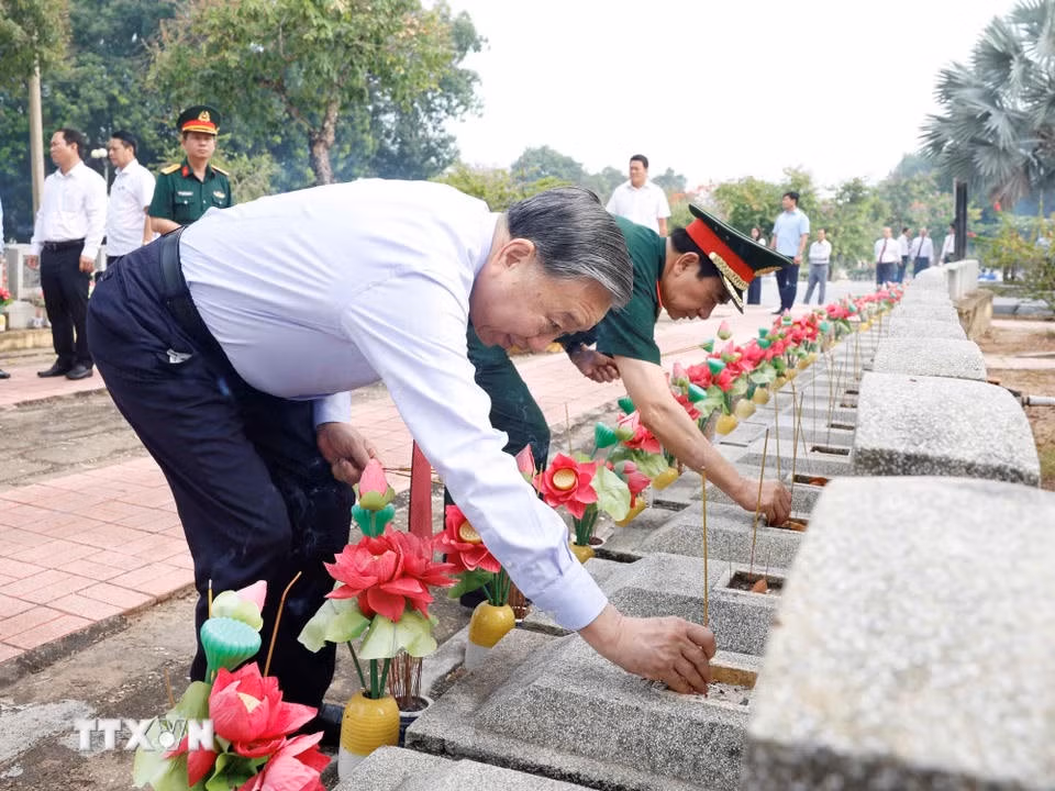Sáng 27/4 tại Tây Ninh, Tổng Bí thư, Chủ tịch nước Tô Lâm cùng Đoàn công tác của Trung ương đến dâng hoa, dâng hương tưởng niệm, tri ân các Anh hùng-Liệt sỹ tại Nghĩa trang Liệt sỹ Tân Biên.