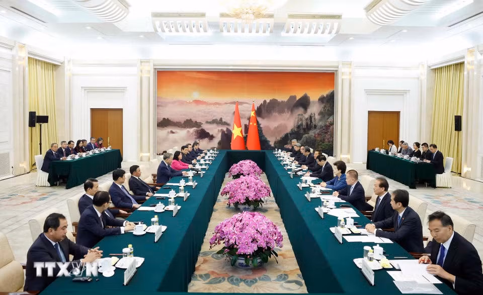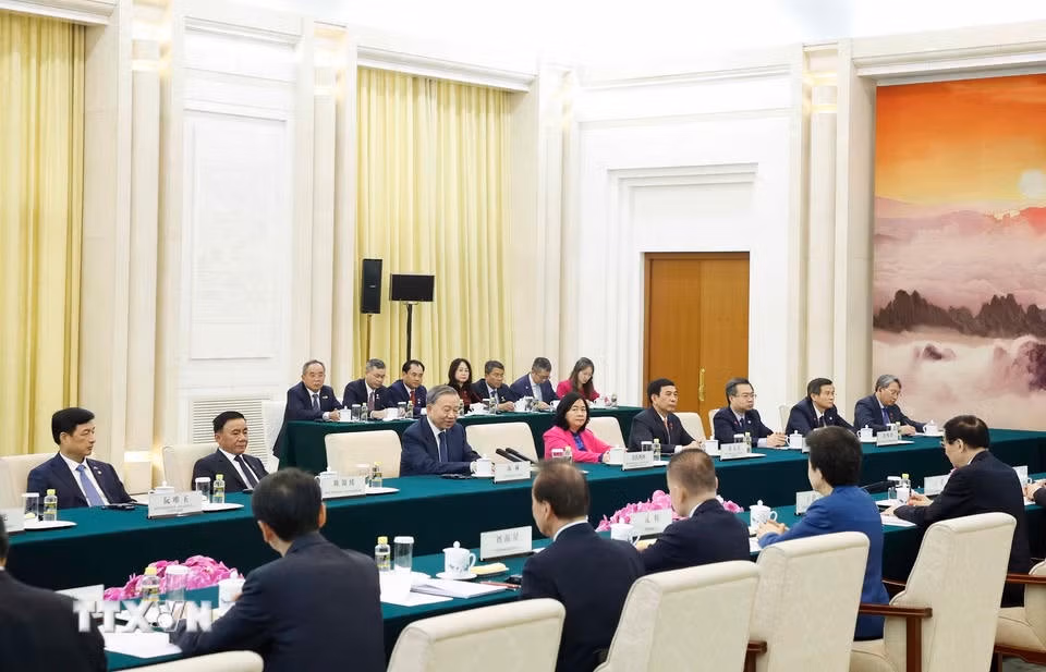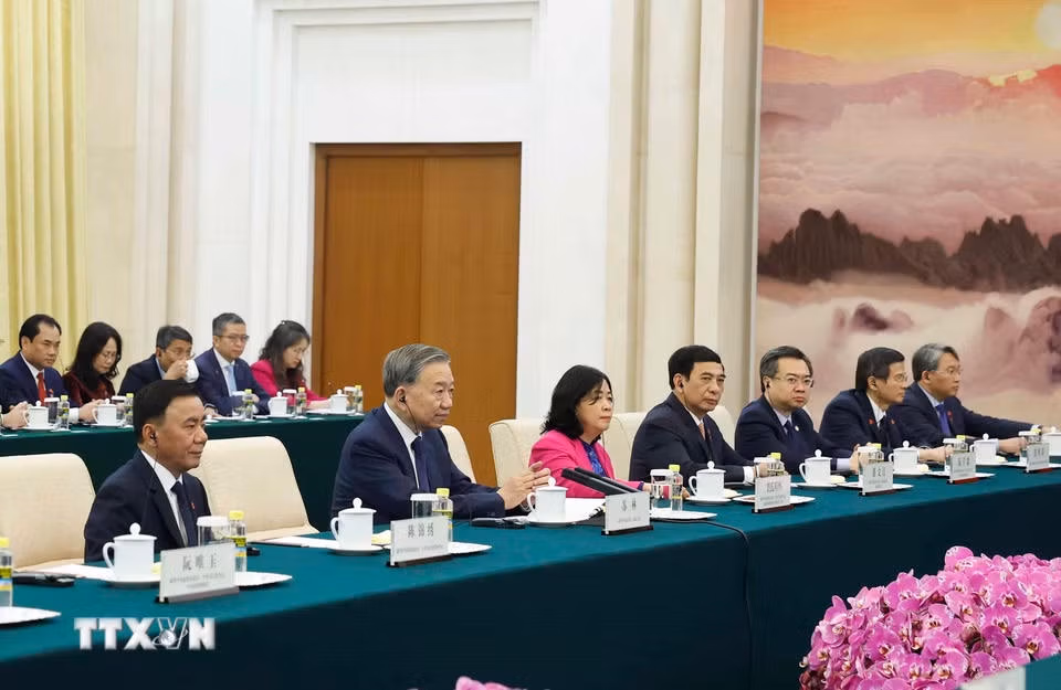 Trong chương trình chuyến thăm cấp Nhà nước đến Trung Quốc, chiều 14/4/2026, tại thủ đô Bắc Kinh, Tổng Bí thư, Chủ tịch nước Tô Lâm hội kiến Chủ tịch Chính hiệp toàn quốc Trung Quốc Vương Hộ Ninh.