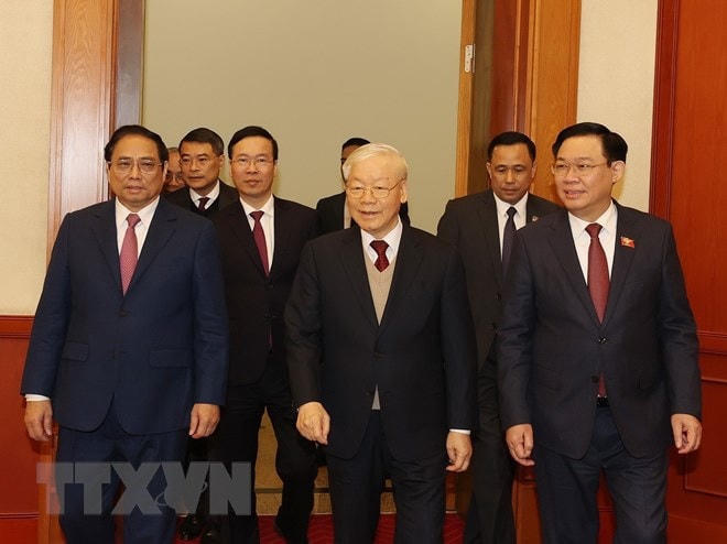 Tổng Bí thư Nguyễn Phú Trọng chúc sự nghiệp cách mạng của nhân dân ta đạt được nhiều thắng lợi mới to lớn hơn nữa; năm 2023 thắng lợi to lớn hơn, phát triển nhanh và bền vững hơn năm 2022.