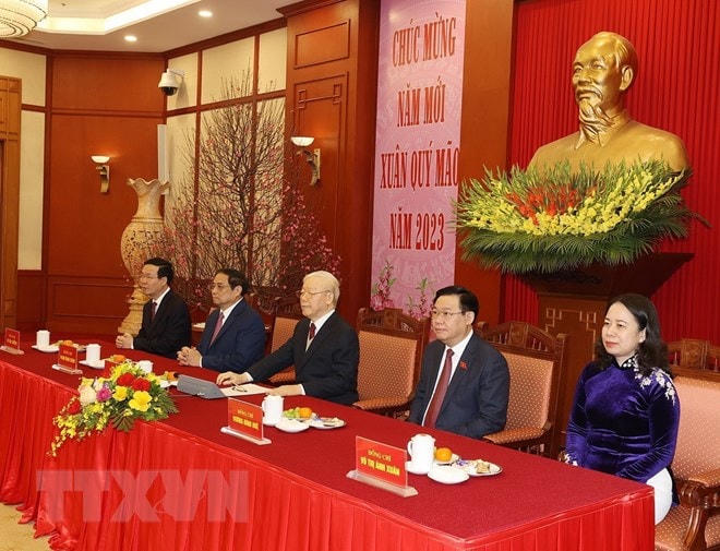 Trong không khí cả nước chào đón năm Quý Mão 2023, mừng Đảng Cộng sản Việt Nam 93 tuổi (3/2/1930 - 3/2/2023), sáng 19/1 (tức ngày 28 tháng 12 năm Nhâm Dần), tại Trụ sở Trung ương Đảng, Tổng Bí thư Nguyễn Phú Trọng đã gặp mặt, chúc Tết các lãnh đạo, nguyên lãnh đạo Đảng, Nhà nước, Mặt trận Tổ quốc Việt Nam.