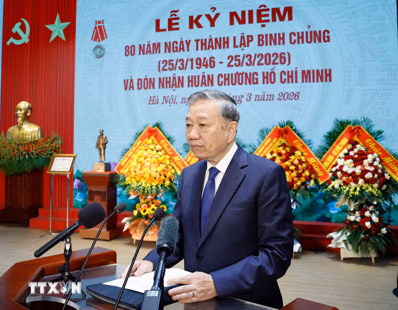 Tổng Bí thư nhấn mạnh buổi Lễ hôm nay là dịp để ôn lại chặng đường 80 năm xây dựng, chiến đấu, chiến thắng và trưởng thành đầy vinh quang của Bộ đội Công binh; tri ân lớp lớp cán bộ, chiến sỹ đã chiến đấu, hy sinh, cống hiến cho độc lập, tự do của Tổ quốc, cho hạnh phúc của nhân dân; khẳng định quyết tâm xây dựng Binh chủng Công binh cách mạng, chính quy, tinh nhuệ, hiện đại, tiếp tục hoàn thành xuất sắc mọi nhiệm vụ trong thời kỳ mới.