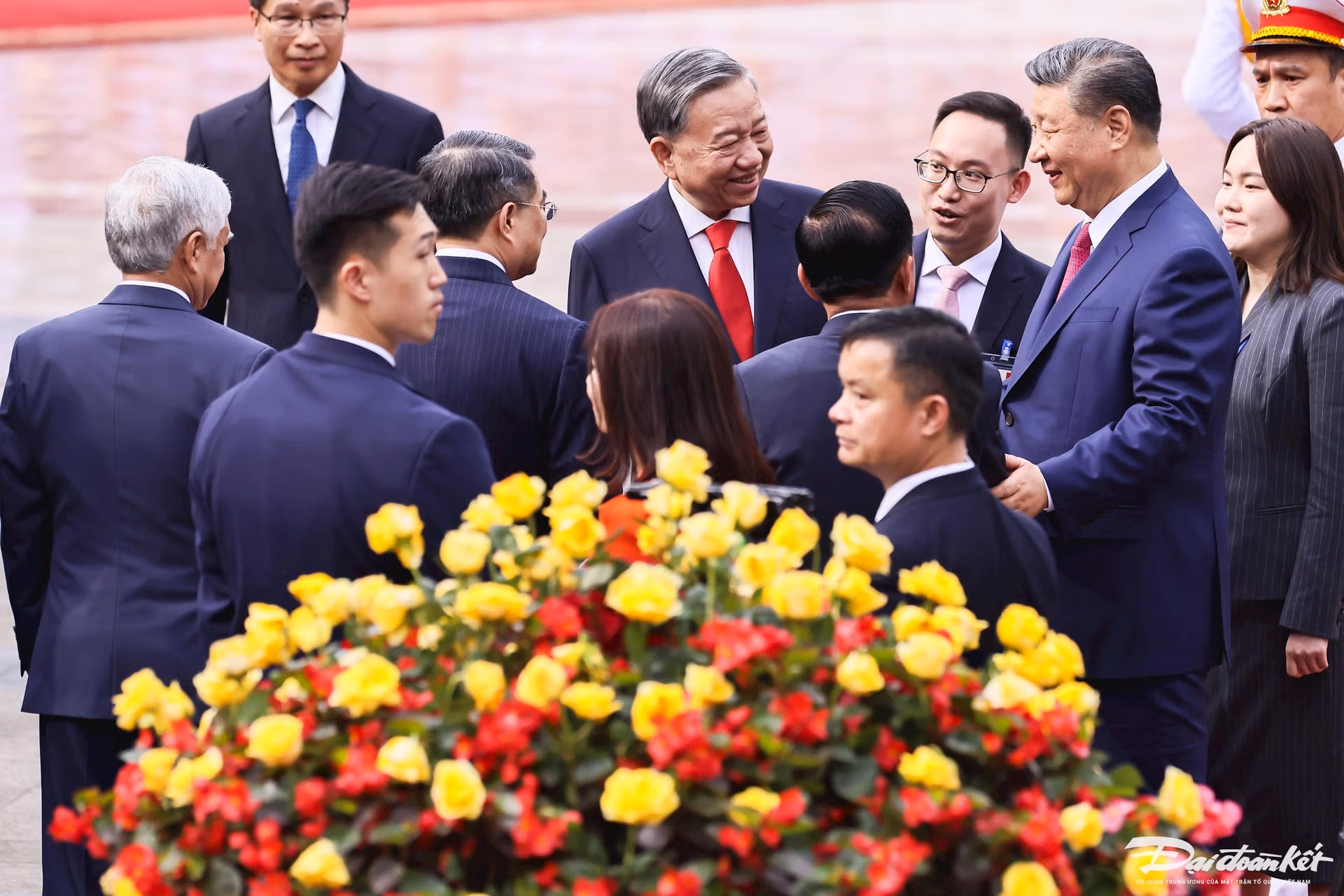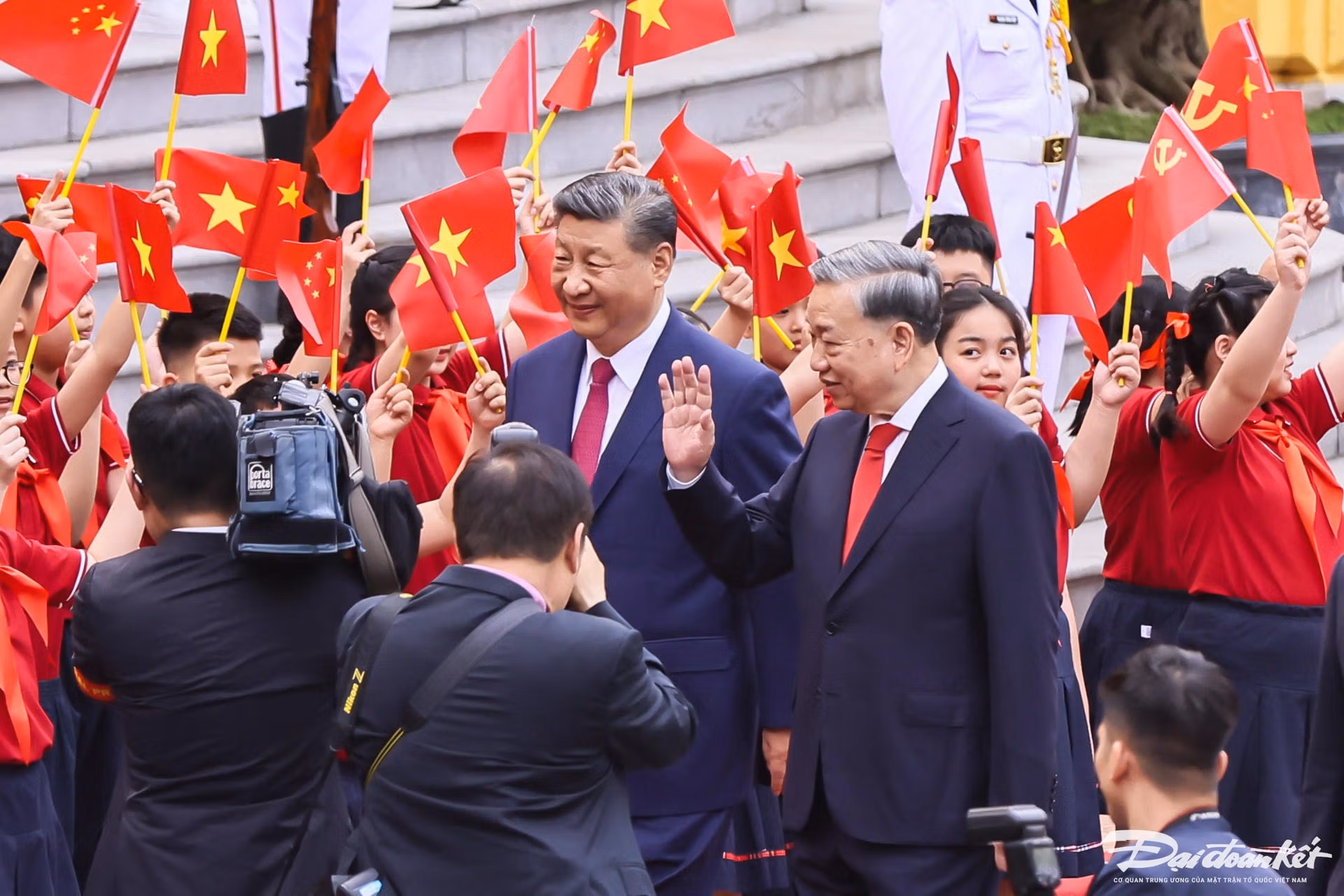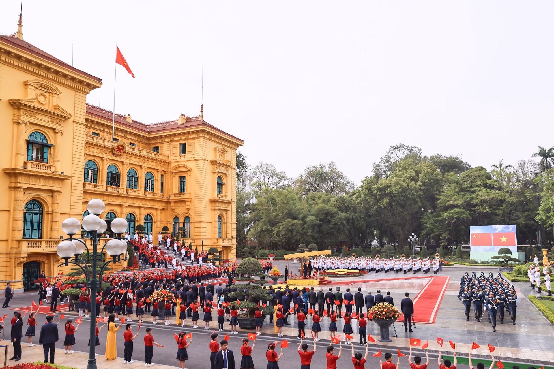 Chiều 14/4, Lễ đón chính thức Tổng Bí thư, Chủ tịch nước Trung Quốc Tập Cận Bình được tổ chức trọng thể tại Phủ Chủ tịch theo nghi thức cao nhất dành đón Nguyên thủ quốc gia. Tổng Bí thư Tô Lâm chủ trì Lễ đón.