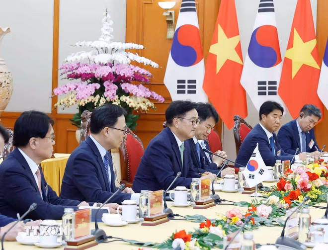 Chủ tịch Quốc hội Woo Won Shik chân thành cảm ơn sự đón tiếp thân tình mà Đảng, Nhà nước, Quốc hội và nhân dân Việt Nam đã dành cho Đoàn; trân trọng chuyển lời thăm hỏi của Tổng thống Lee Jae Myung và các lãnh đạo cấp cao Hàn Quốc tới Tổng Bí thư Tô Lâm và các lãnh đạo cấp cao Việt Nam.