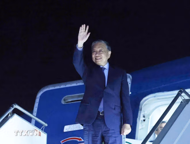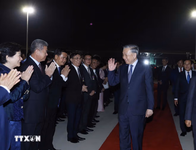 Tổng Bí thư Tô Lâm kết thúc tốt đẹp chuyến thăm cấp Nhà nước tới Campuchia Thứ Bảy 07/02/2026 08:02 (GMT+7) Tối 6/2, Tổng Bí thư Tô Lâm và đoàn đại biểu cấp cao Việt Nam rời Phnom Penh về nước, kết thúc tốt đẹp chuyến thăm cấp Nhà nước tới Vương quốc Campuchia. Lễ tiễn Tổng Bí thư Tô Lâm và đoàn cấp cao Việt Nam tại Sân bay Quốc tế Techo. (Ảnh: Thống Nhất/TTXVN).Lễ tiễn Tổng Bí thư Tô Lâm và đoàn cấp cao Việt Nam tại Sân bay Quốc tế Techo. (Ảnh: Thống Nhất/TTXVN).Tổng Bí thư Tô Lâm rời Phnom Penh về nước. (Ảnh: Thống Nhất/TTXVN).Tổng Bí thư Tô Lâm rời Phnom Penh về nước. (Ảnh: Thống Nhất/TTXVN). TheoVietnam+ (VietnamPlus)
