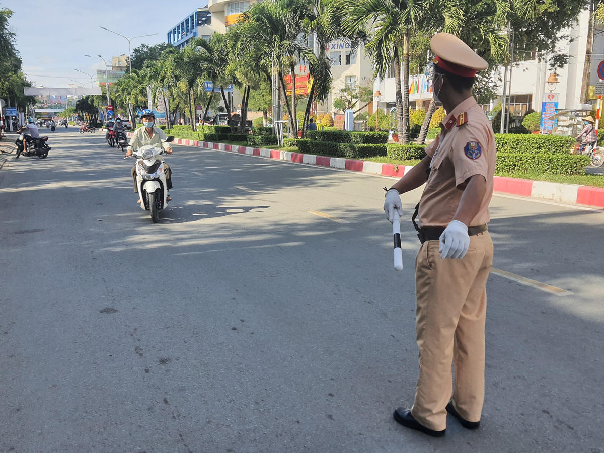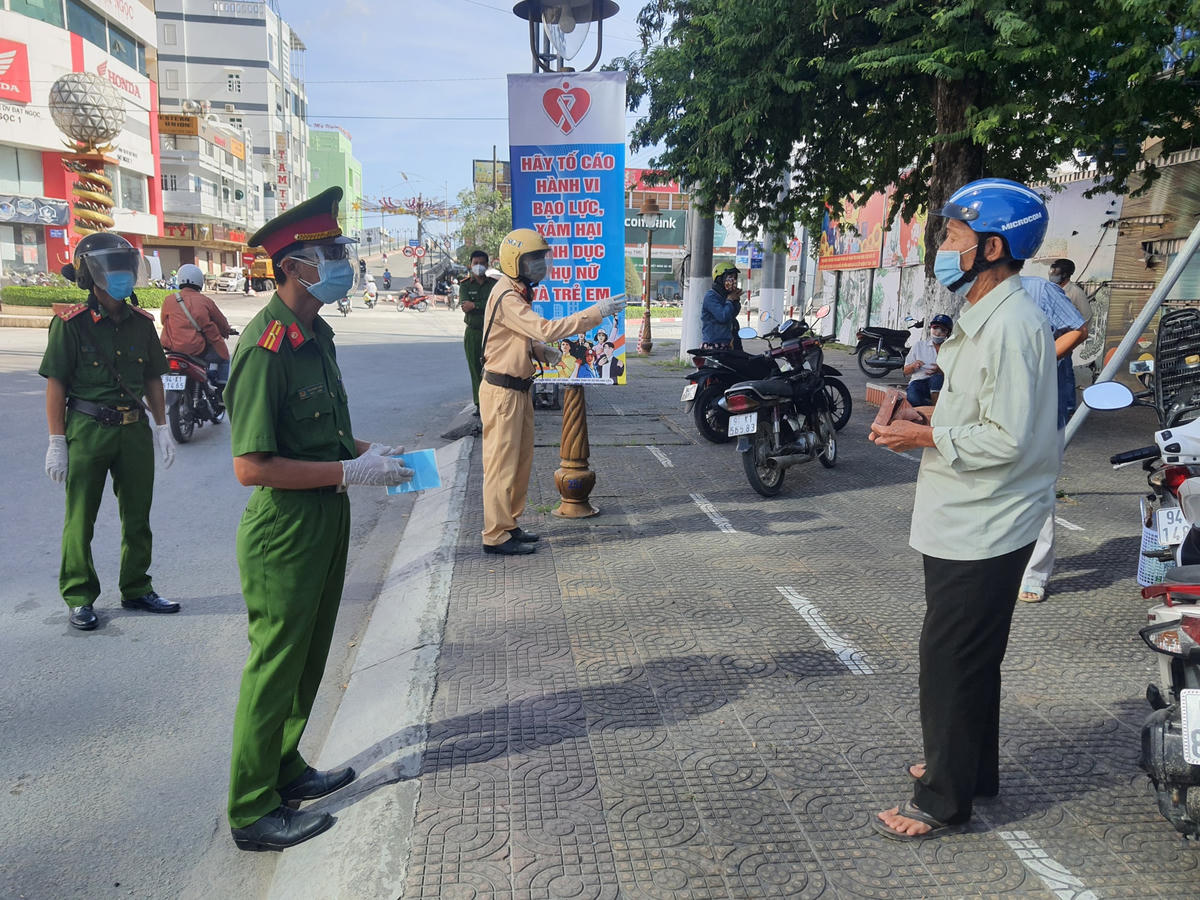 Ngoài điểm kiểm tra, tầm soát Covid-19 trên đường Trần Phú, Công an TP Bạc Liêu phối hợp với Trung tâm y tế thành phố tổ chức 1 điểm kiểm tra, tầm soát Covid-19 ngẫu nhiên người đi đường ở đường Trần Huỳnh, phường 1, TP Bạc Liêu.