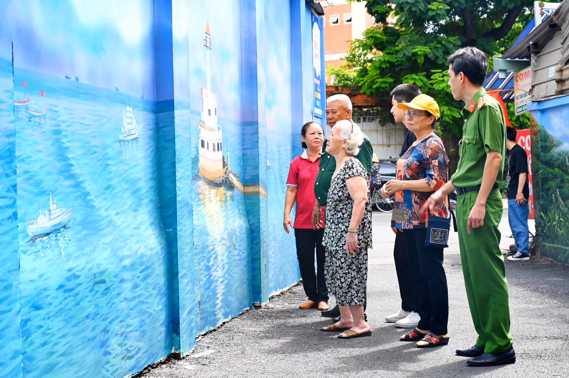 Từ những bức tường gạch loang lổ, chằng chịt quảng cáo “bẩn”, sau khi được lực lượng Công an TP HCM, đoàn viên thanh niên cùng nhân dân bóc xóa, phục hồi hiện trạng, trong những ngày nghỉ lễ 2-9 người dân đã được chiêm ngưỡng những bức tranh nghệ thuật đầy màu sắc được thực hiện bởi các nghệ nhân vẽ tranh phong cảnh, biển - đảo, quê hương đất nước, con người Việt Nam.