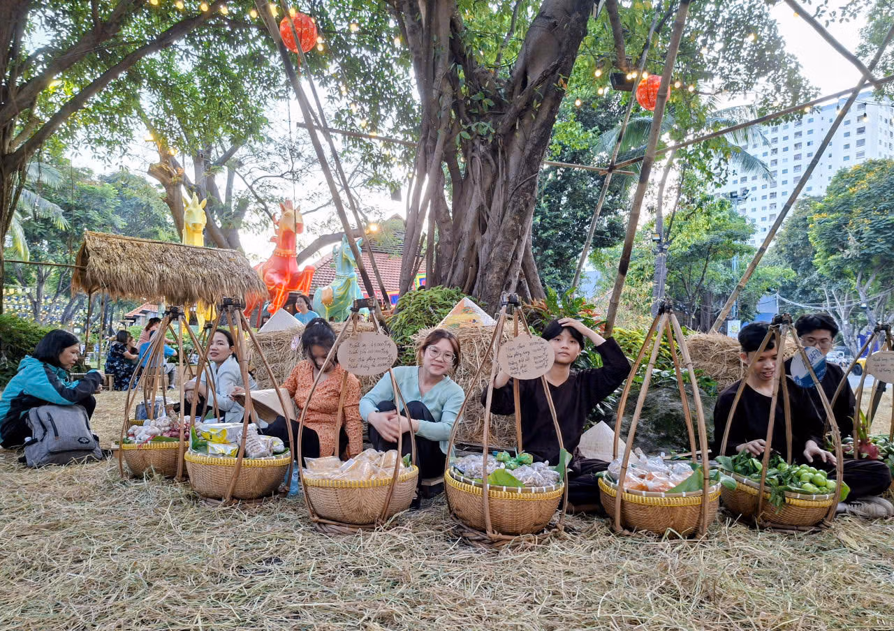 Ở khu trải nghiệm làng nghề, khách tham quan có thể trực tiếp xem nghệ nhân làm bánh dân gian, đan nón, làm gốm, gói bánh tét, chế biến bánh phục linh hay sữa đậu nành truyền thống. Đây là điểm nhấn giúp lễ hội không chỉ dừng lại ở thưởng thức món ăn mà còn mở rộng sang trải nghiệm văn hóa sống động.