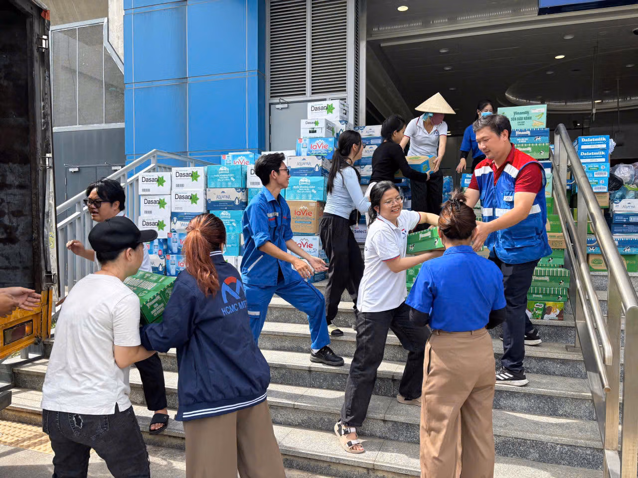 Sau đây là một số hình ảnh hàng hoá được tiếp nhận ở các nhà ga metro và vận chuyển tới Uỷ ban Mặt trận Tổ quốc Việt Nam TP Hồ Chí Minh.