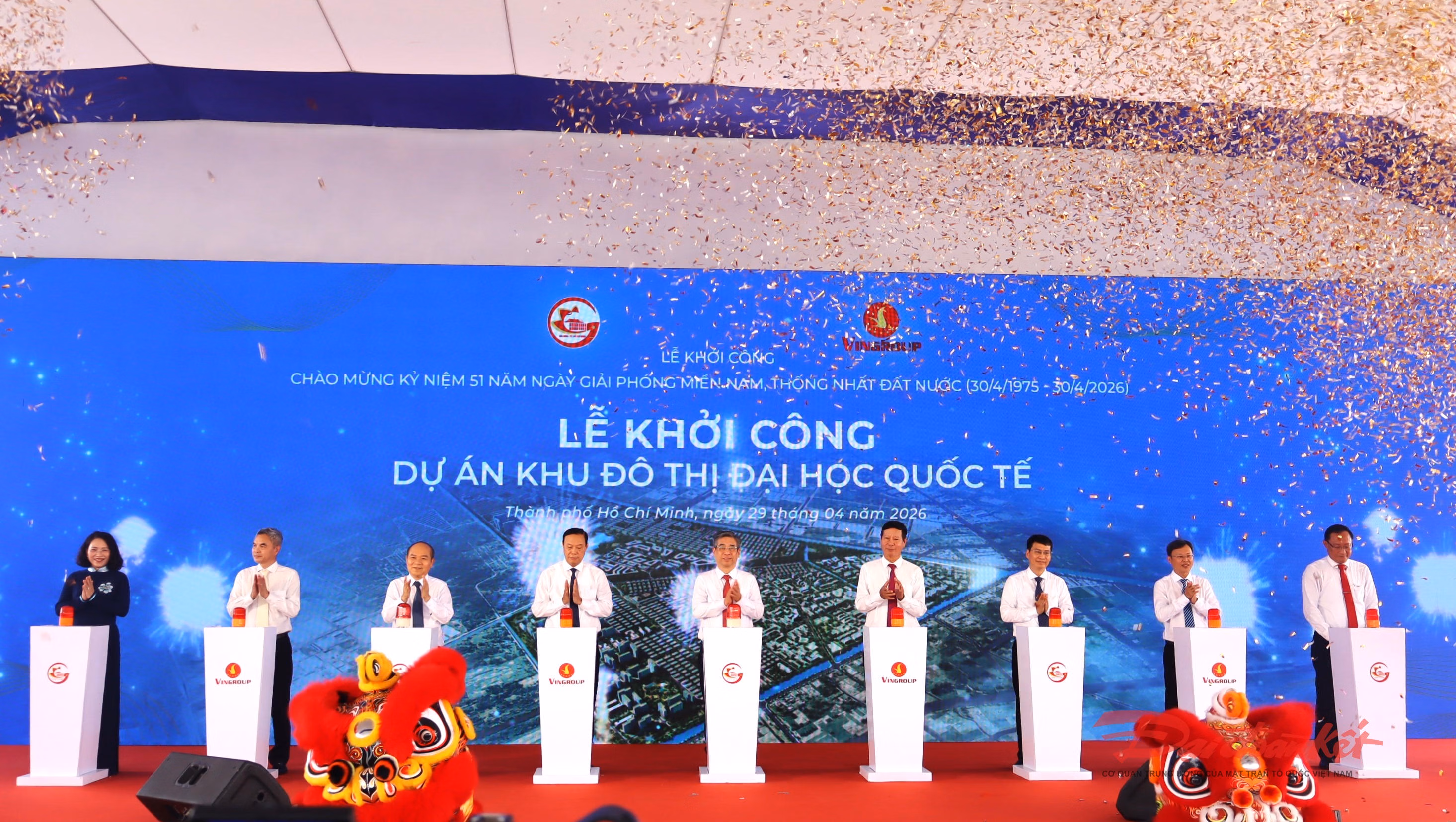 Sáng 29/4, trong không khí cả nước chào mừng kỷ niệm 51 năm Ngày Giải phóng miền Nam, thống nhất đất nước (30/4/1975 - 30/4/2026), UBND TP Hồ Chí Minh và Tập đoàn Vingroup tổ chức Lễ khởi công dự án Khu đô thị Đại học quốc tế có quy mô 880 ha, với vị trí nằm trong vùng kinh tế trọng điểm phía Nam thông qua Quốc lộ 22, đường Vành đai 3 và tuyến cao tốc TP Hồ Chí Minh – Mộc Bài.