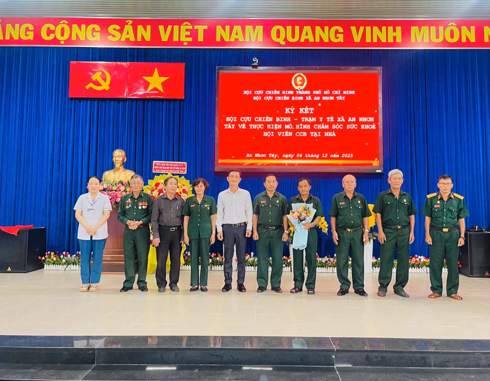 Lễ kỷ niệm 36 năm Hội Cựu chiến binh Việt Nam tại xã An Nhơn Tây, TP Hồ Chí Minh, nổi bật với việc ra mắt Tổ chăm sóc sức khỏe hội viên, tăng cường chăm sóc định kỳ và phát hiện bệnh sớm cho cựu chiến binh cao tuổi.