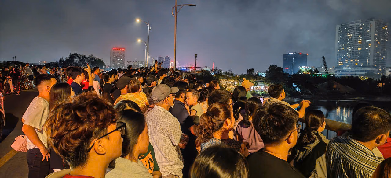 Đến 19 giờ, đông đảo người dân đã tập trung tại khu vực trung tâm để chờ đón chương trình bắn pháo hoa vào lúc 21 giờ.