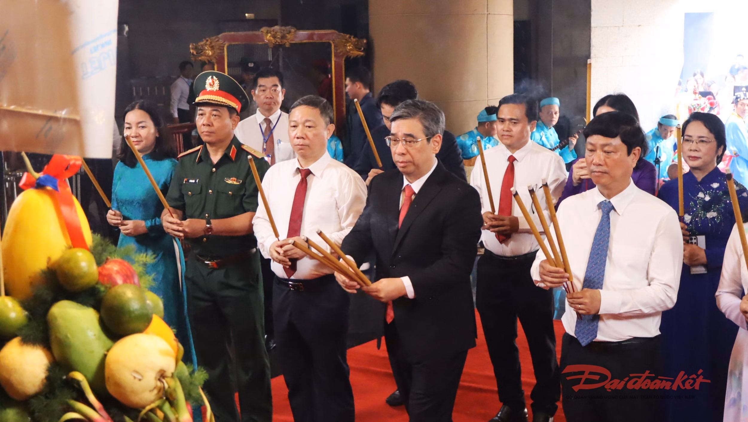 Trong không khí thiêng liêng, các lãnh đạo Thành ủy, HĐND, UBND và Ủy ban MTTQ Việt Nam TP Hồ Chí Minh, cùng đông đảo người dân, kiều bào, học sinh, sinh viên đã thành kính dâng hương, dâng hoa lên Quốc Tổ Hùng Vương và Đức Lễ Thành hầu Nguyễn Hữu Cảnh - người có công khai phá vùng đất Sài Gòn - Gia Định.