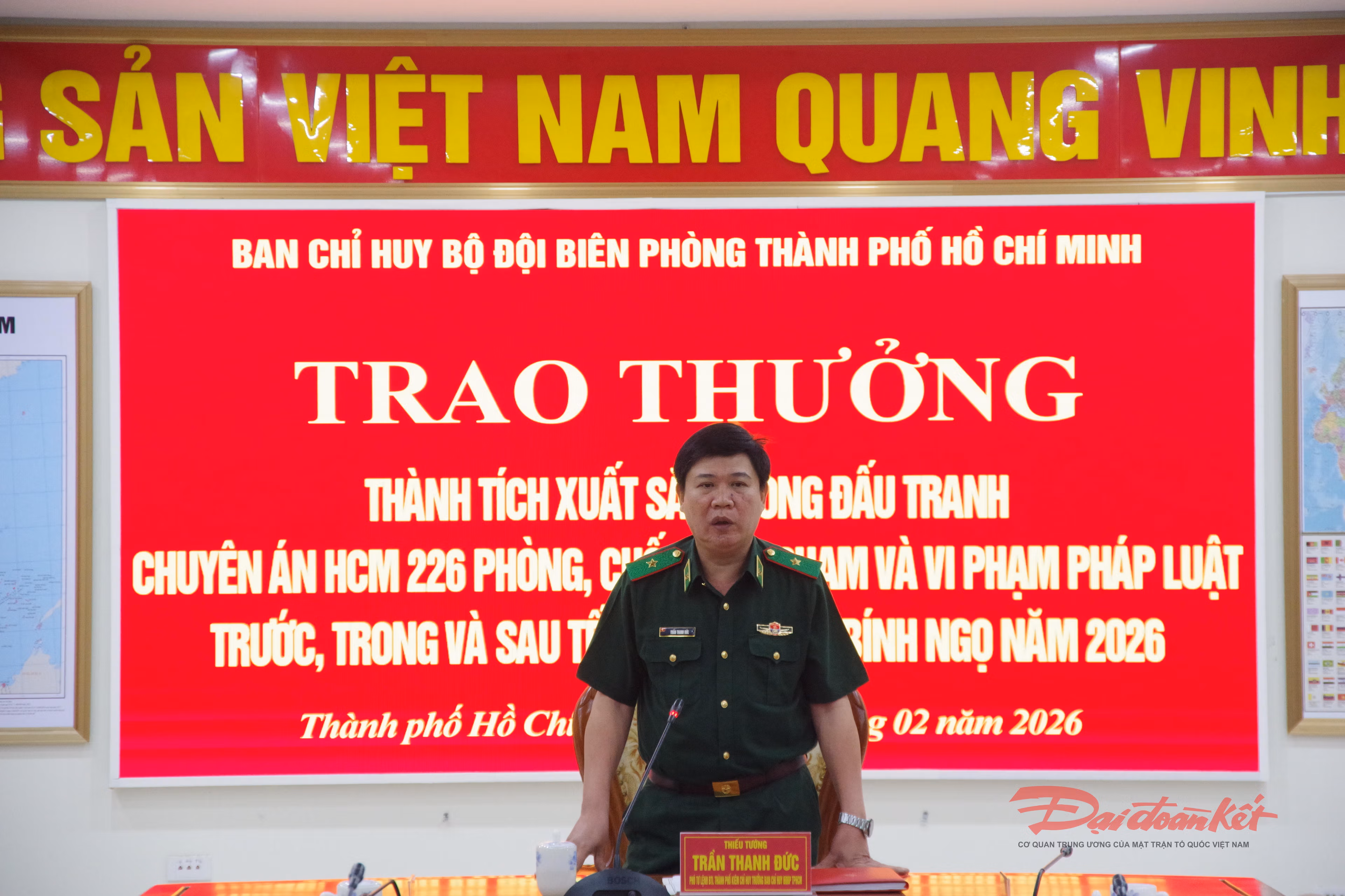 Sáng 11/2, Đảng ủy, Ban Chỉ huy Bộ đội Biên phòng (BĐBP) TP Hồ Chí Minh đã tổ chức hội nghị công bố và trao thưởng nóng cho tập thể Phòng Nghiệp vụ vì đã lập thành tích xuất sắc, đột xuất trong đấu tranh chuyên án, bắt quả tang đối tượng làm và tàng trữ tiền giả.