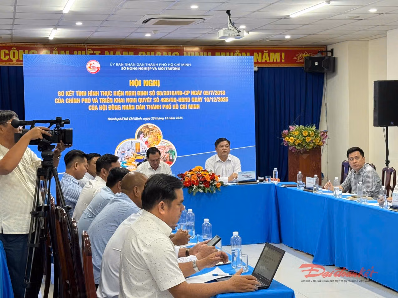 Ngày 23/12, Sở Nông nghiệp và Môi trường TP Hồ Chí Minh tổ chức Hội nghị sơ kết tình hình thực hiện Nghị định số 98/2018/NĐ-CP của Chính phủ về chính sách khuyến khích phát triển hợp tác, liên kết trong sản xuất và tiêu thụ sản phẩm nông nghiệp; đồng thời triển khai Nghị quyết số 496/2025/NQ-HĐND của HĐND thành phố.