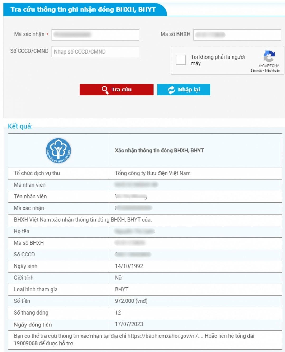Bước 5: BHXHVN cung cấp thông tin cho người tham gia theo Mã xác nhận và Mã số BHXH/Số CCCD.