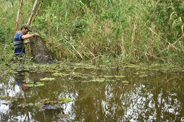 Anh Huỳnh Vũ Hoàng (40 tuổi), ngụ xã Khánh Bình Tây Bắc, huyện Trần Văn Thời (Cà Mau) là một nông dân có thâm niên trên 15 năm gắn bó với cánh rừng tràm miệt U Minh Hạ. Công việc hằng ngày của anh Hoàng là vào rừng giăng câu, đặt lờ, lọp… bắt cá để mưu sinh. Với anh Hoàng, những sản vật có từ tự nhiên là nguồn thu nhập giúp anh nuôi sống cả gia đình.